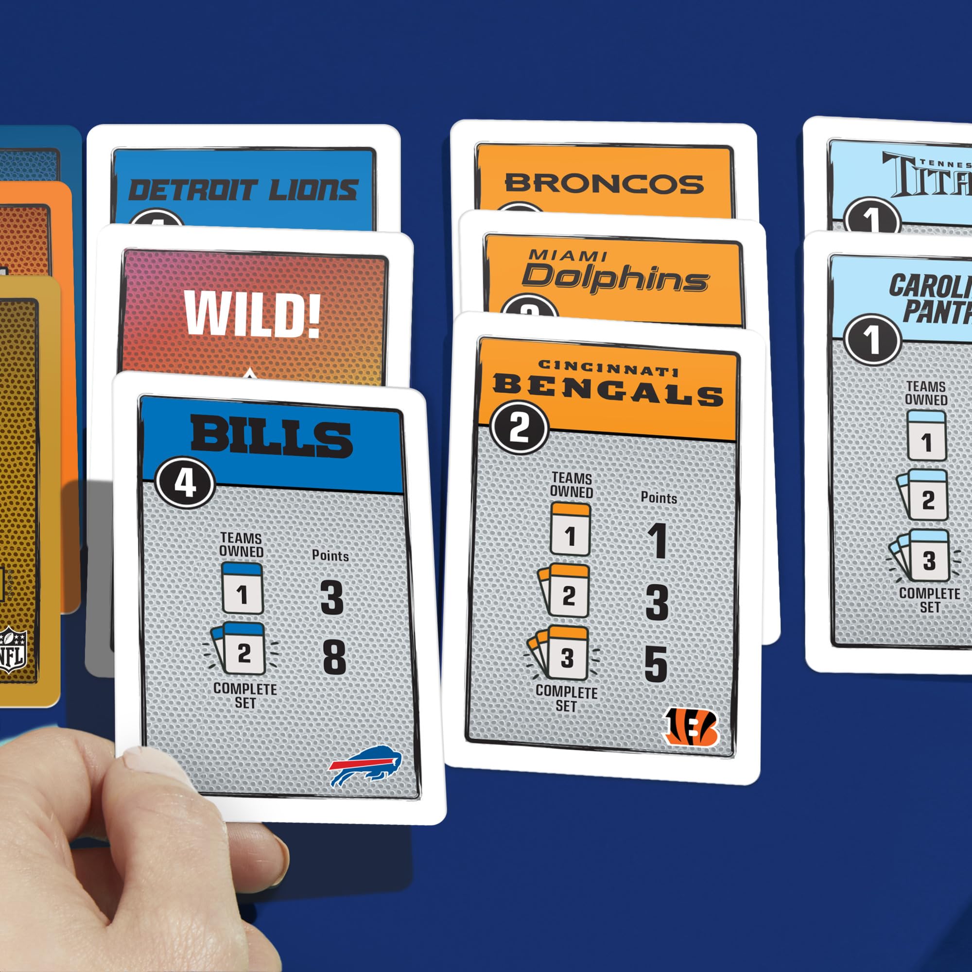 SCORE (OR STEAL) NFL TEAMS: In this light strategy card game, be the first to collect 3 sets of NFL teams to win! Features all 32 teams, including the Philadelphia Eagles, Detroit Lions, and Kansas City Chiefs