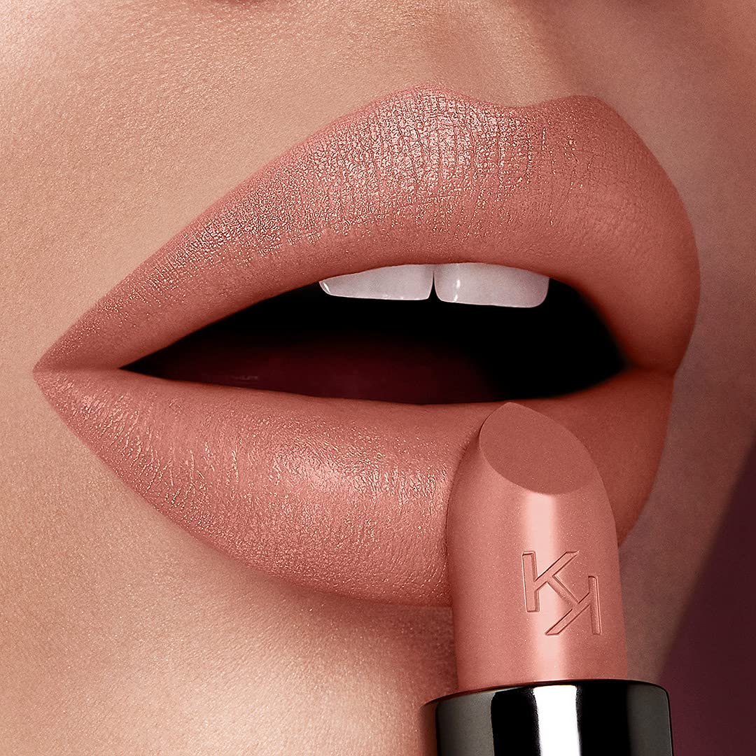 The lipstick glides on easily, leaving the lips silky soft