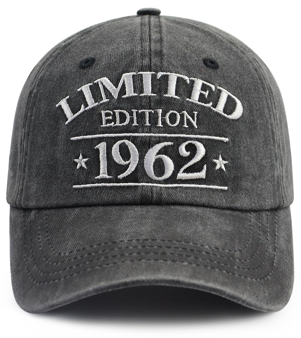 Metal Buckle Closure: 1962 Birthday Gifts Hat for Women Men Baseball Hat, One Size Fits Most, Cap Circumference: 21.65-23.62 Inches/55-63cm. Brim: 2.75 Inches/7cm. Height: 3.54 Inches/9cm. Hats for Men Baseball Cap Adjustable Metal Buckle, Easy and Convenient to Adjust the Tightness According to the Head Circumference, Serrated Metal Buckle, Solid and Reliable. It Adjusts to Fit a Fairly Large Head.