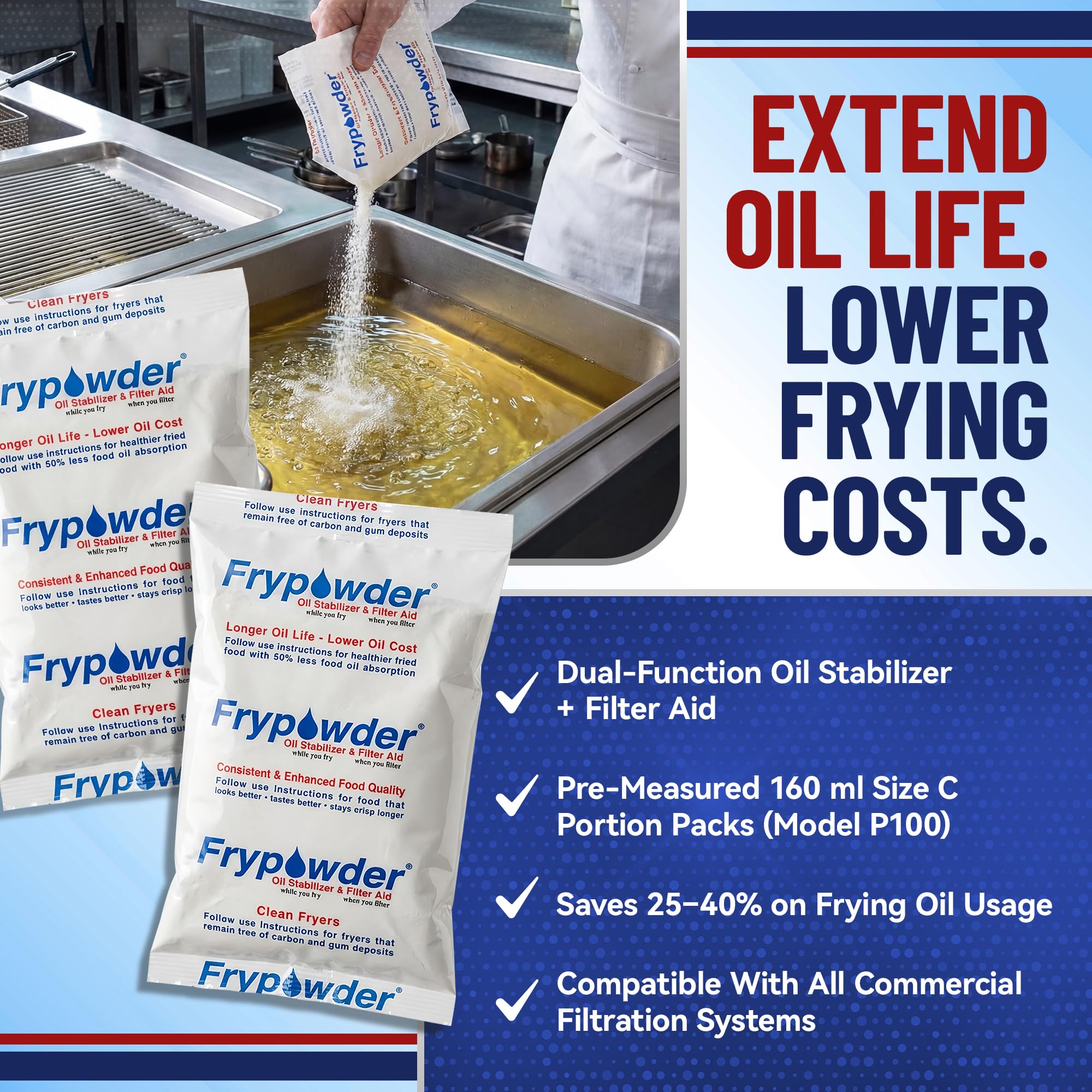 ENHANCE FLAVOR, APPEARANCE & COOKING SPEED – For over 20 years, FryPowder Oil Stabilizer & Filter Aid has kept deep fryer oil in peak condition, preventing smoking, foaming, and carbon buildup. Just add to hot oil before each 6–8 hour frying session to maintain clean, stable oil that delivers crispy, golden results every time. By extending oil life, improving frying efficiency, and reducing waste, FryPowder minimizes costly oil changes while ensuring consistent, high-quality performance in restaurants, food trucks, and commercial kitchens.