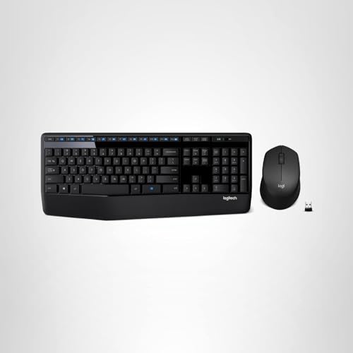 Full-Size Wireless Keyboard: Comfortable, quiet typing on a familiar keyboard layout with palm rest, spill-resistant design, and media keys. This wireless keyboard and mouse logitech has easy-access to media keys