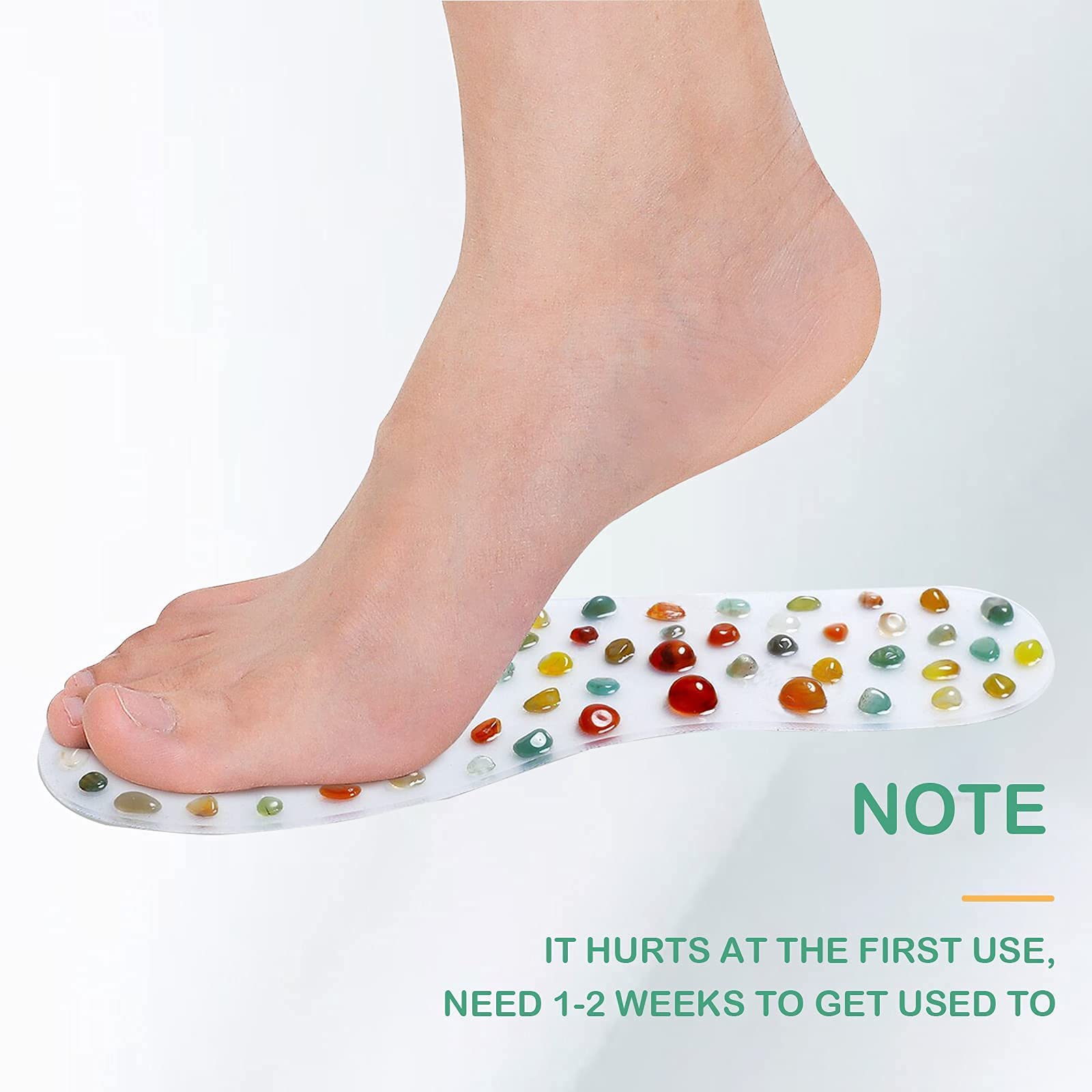 WASHABLE - This foot massage insole is made of food-grade odorless silicone; the smooth agate stone is firmly installed into the gel. Wash freely, quite easy to care for.
