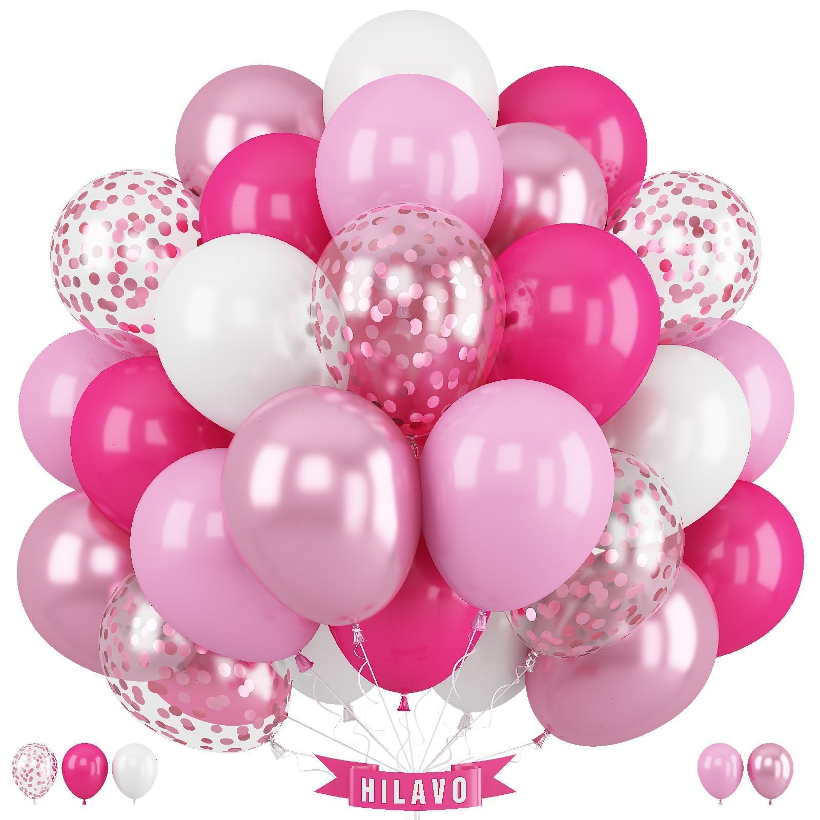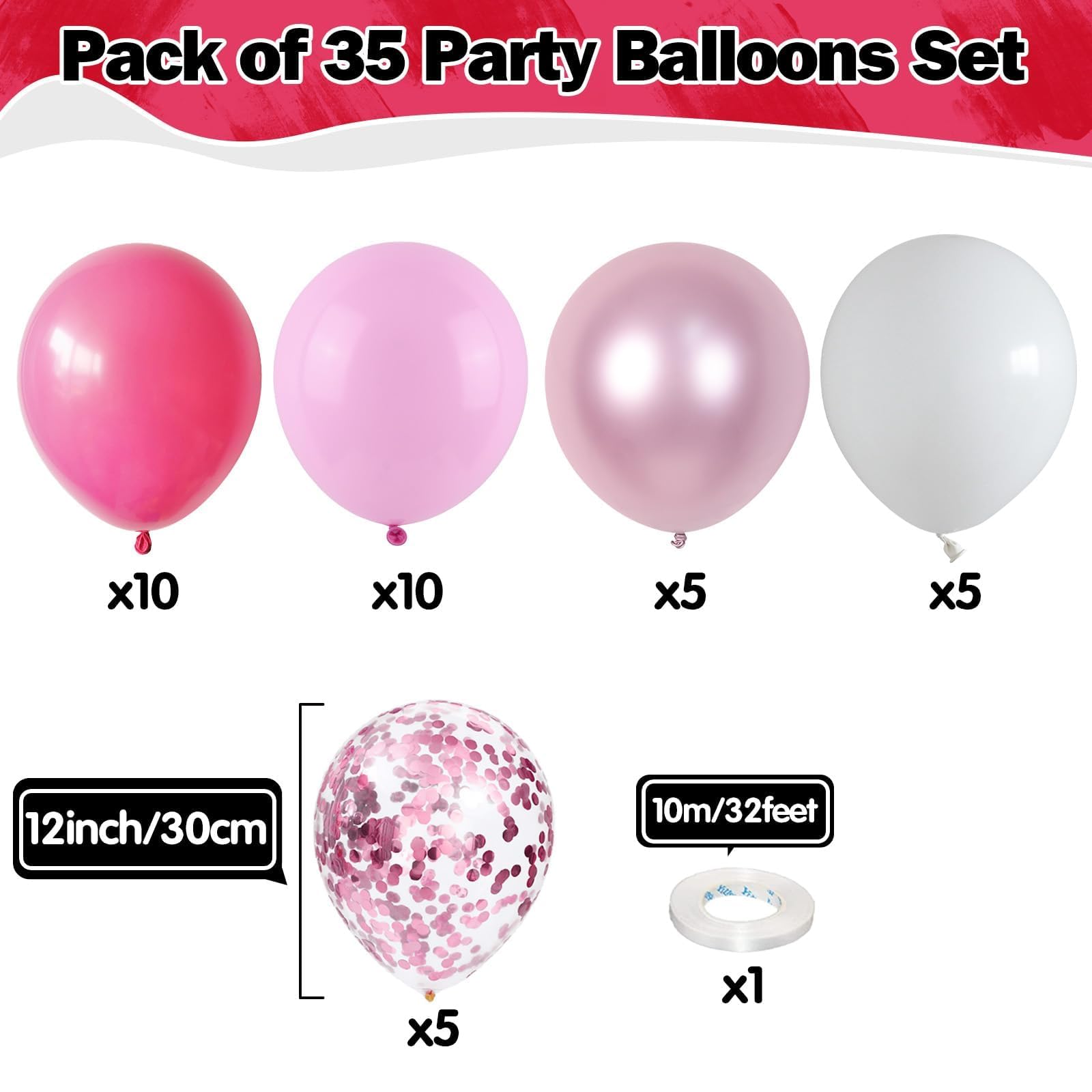 🎈Package Includes - You'll get 35 pieces 12 inch party balloons (10pcs rose red balloons, 5pcs metallic pink balloons, 10pcs light pink balloons, 5pcs white balloons, 5pcs pink confetti balloons) and 1 roll of 10m ribbon, which are enough to decorate your party to keep it interesting, these dazzling colors will make your party very attractive, a great way to decorate any theme party. You can make your balloon backdrop, balloon arch garland, balloon bouquet, home or table decorations and more.