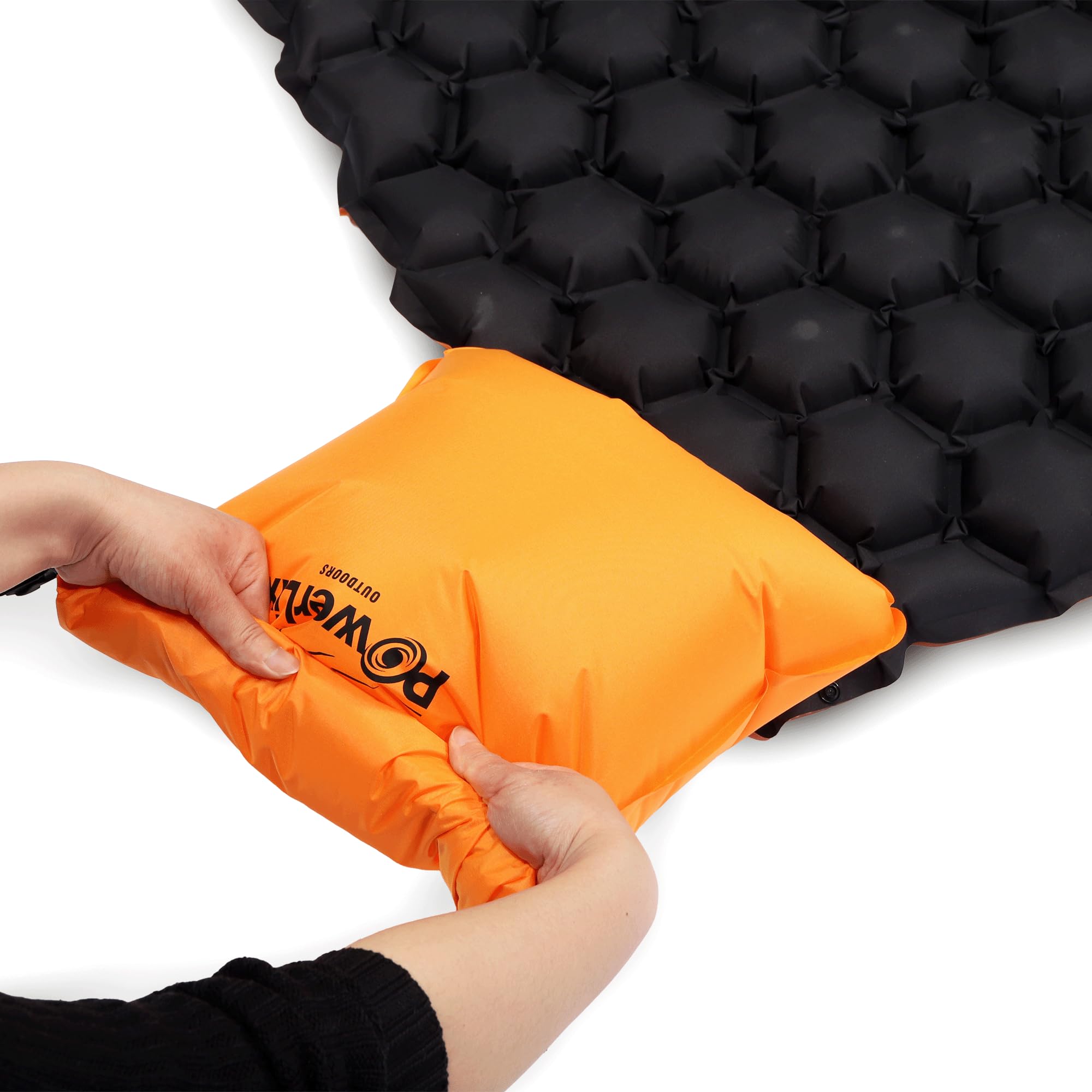 INNOVATIVE EASY-INFLATION PUMP BAG: the camping mat pad comes with a inflation bag that allows air to be transferred into the sleeping pad without using your mouth, It also prevents any moisture from going into the pad. Took around 1-3 minutes to Inflate. Packed Weight: 3.53 lbs; Packed Size: 12.6 x 5 inches; The camping pad is also a camping gear must haves luxury, being comfortable yet lightweight. It rolls up small, making it effortless to carry around.