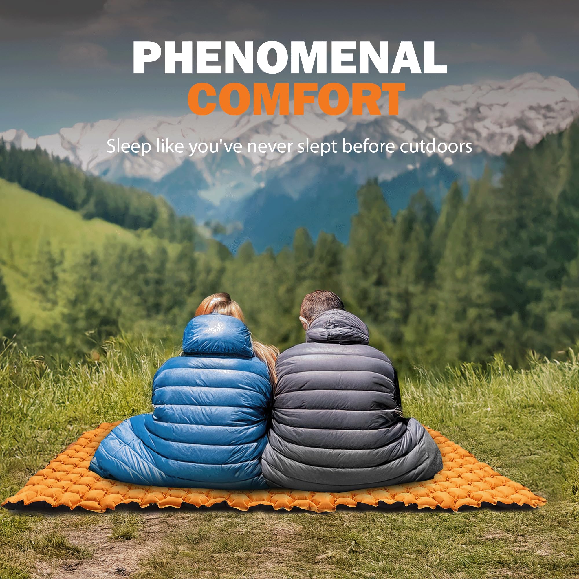 UNIQUE LONGLASTING DURABILITY: It's the mat of all mats! The sleeping pad for camping is made of durable, outdoor grade materials for durability and tear resistant. It includes thermal insulation, to keep your body warm from the cold winter ground. Our camping sleeping mat is 100% waterproof, making it perfect for any outdoor activities. You can say goodbye to sore backs and other discomforts normally left by bumps and rocks underneath the floor of your tent!
