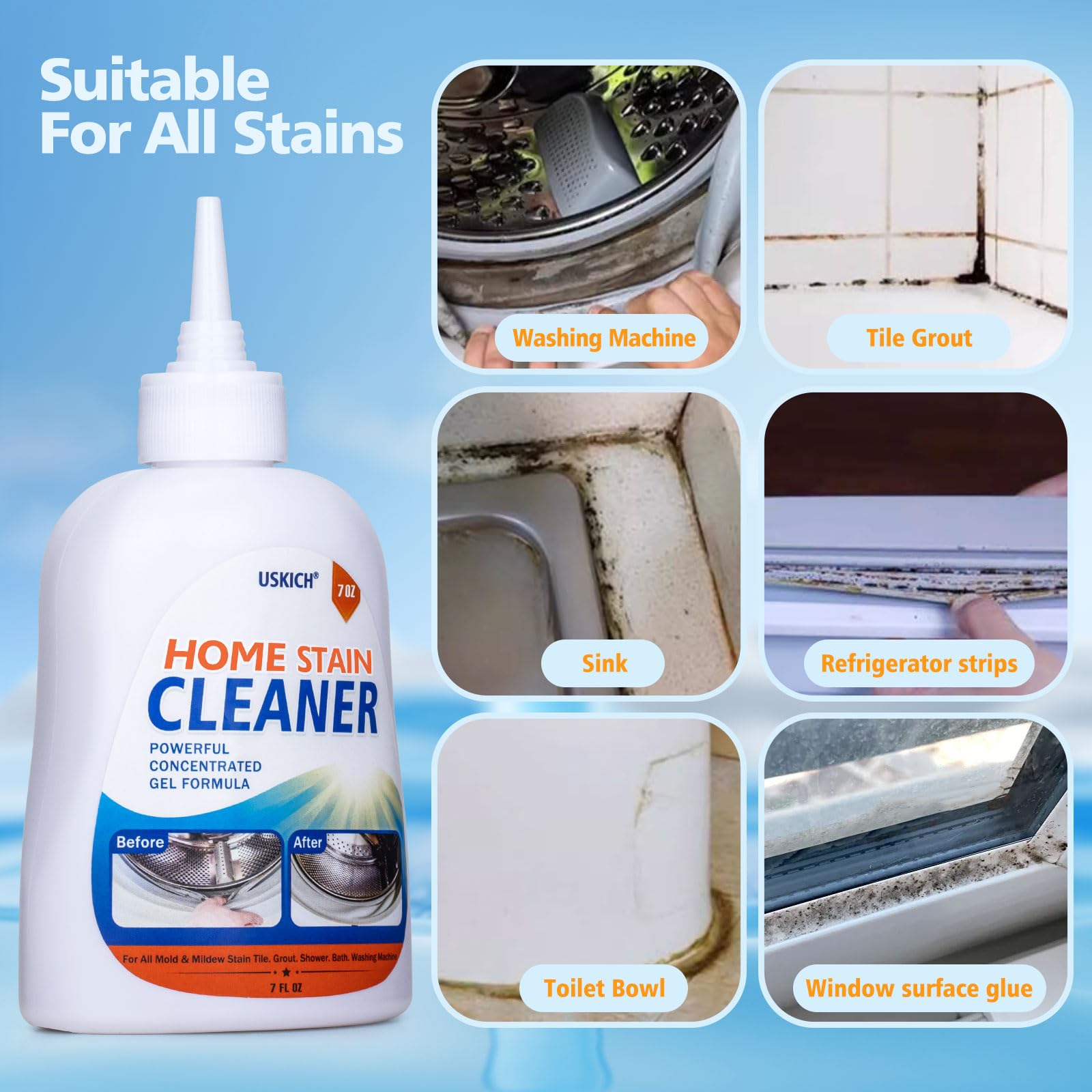 WIDE RANGE OF USE: Home stain removal gel is suitable for all kinds of surface, Cleaner for Washing Machines,Bathroom Ceiling,Tile Grout,Toilet Bowl,Window surface glue,Shower Walls,Sink, Refrigerator strips, Stainless steel sinks. Powerful home remover gel can also used as window caulk.