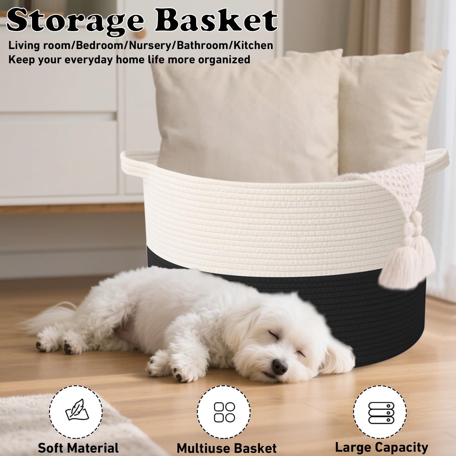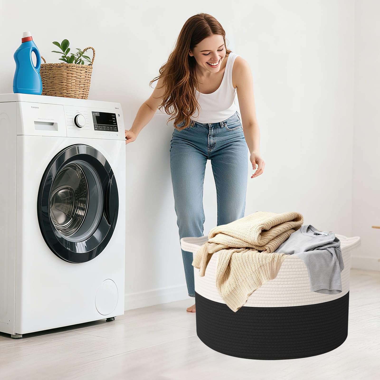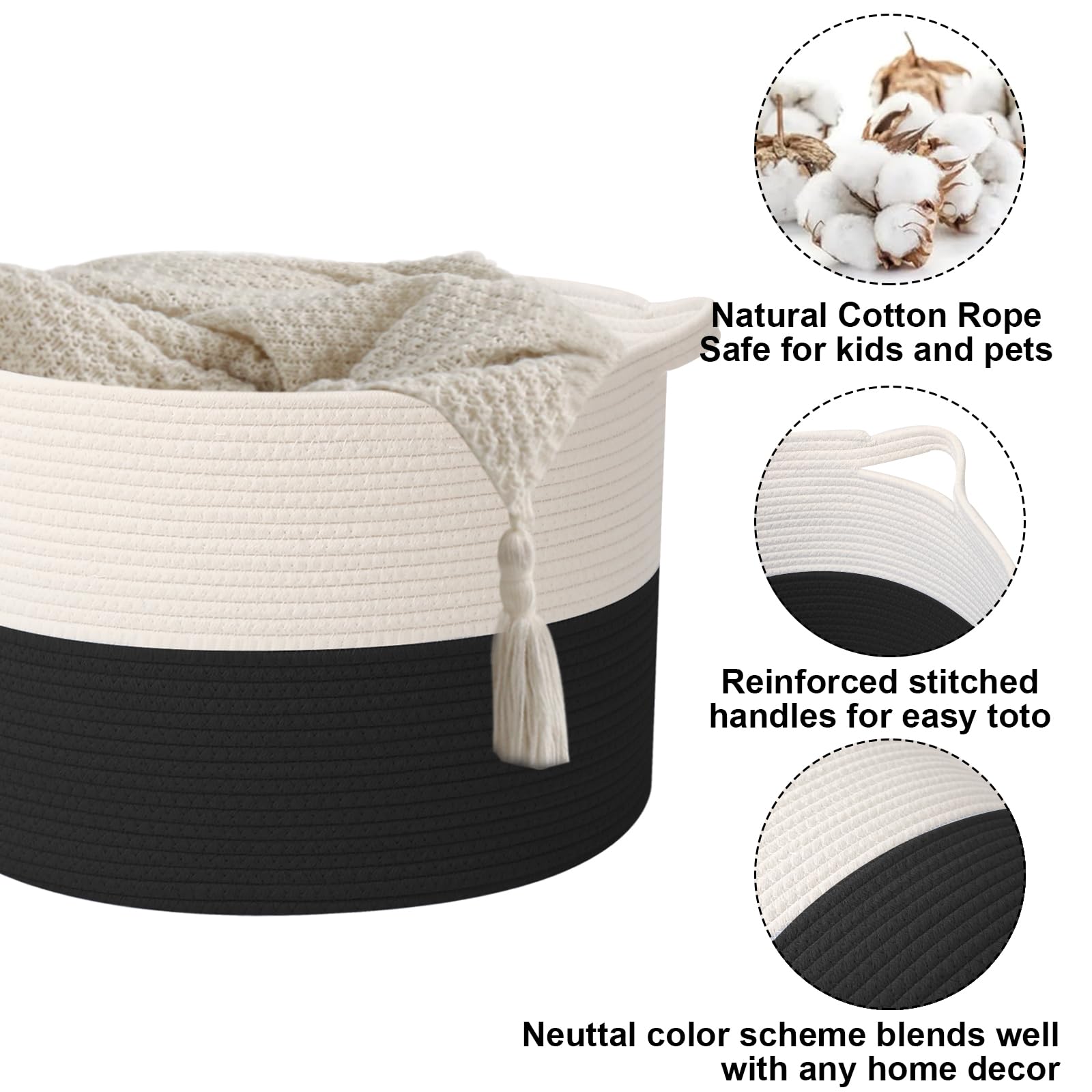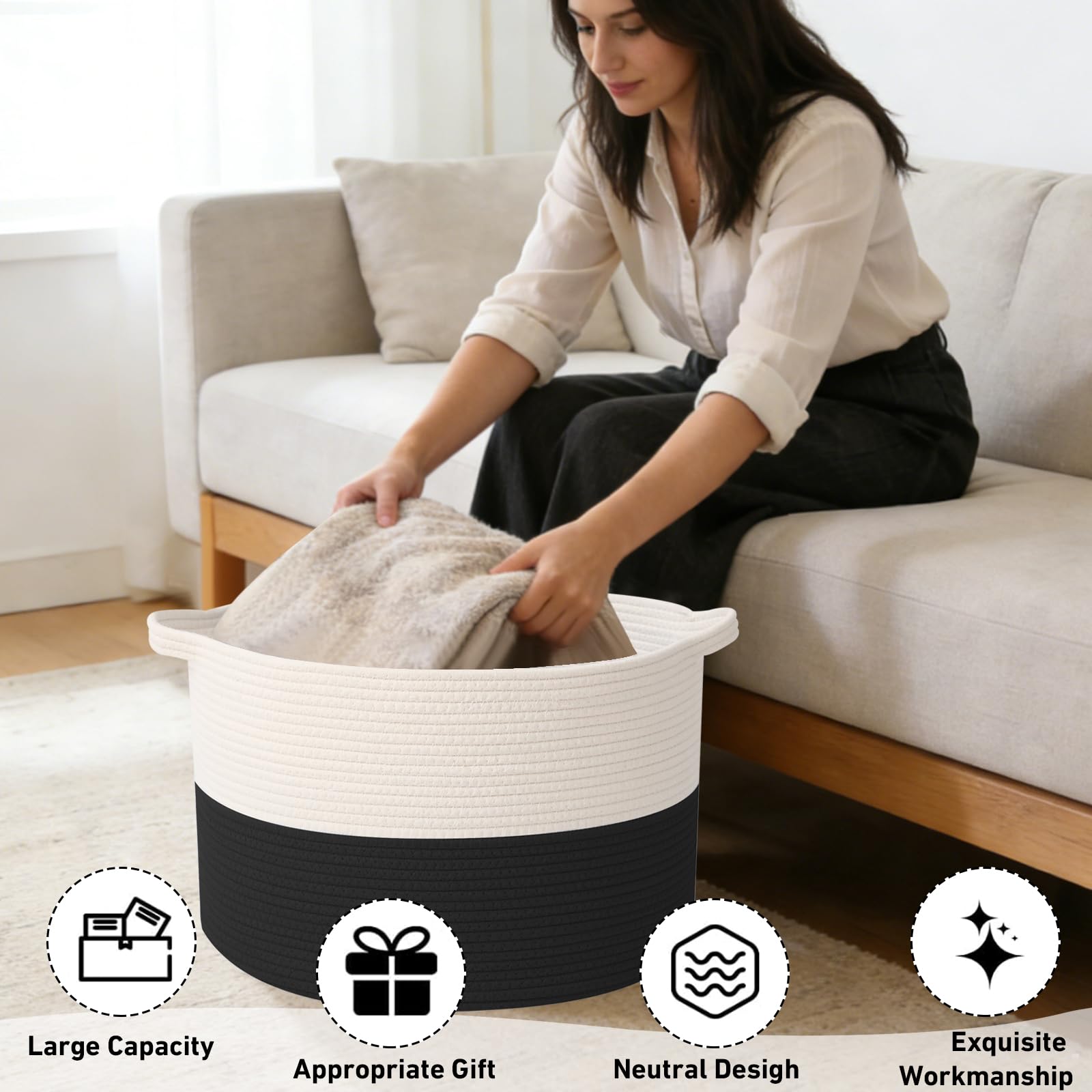 【High-Quality Craftsmanship Design】Made with soft, durable cotton rope. Slow-woven for even texture and long-lasting durability. The two built-in handles are sturdy.Strong handles for easy carrying or move