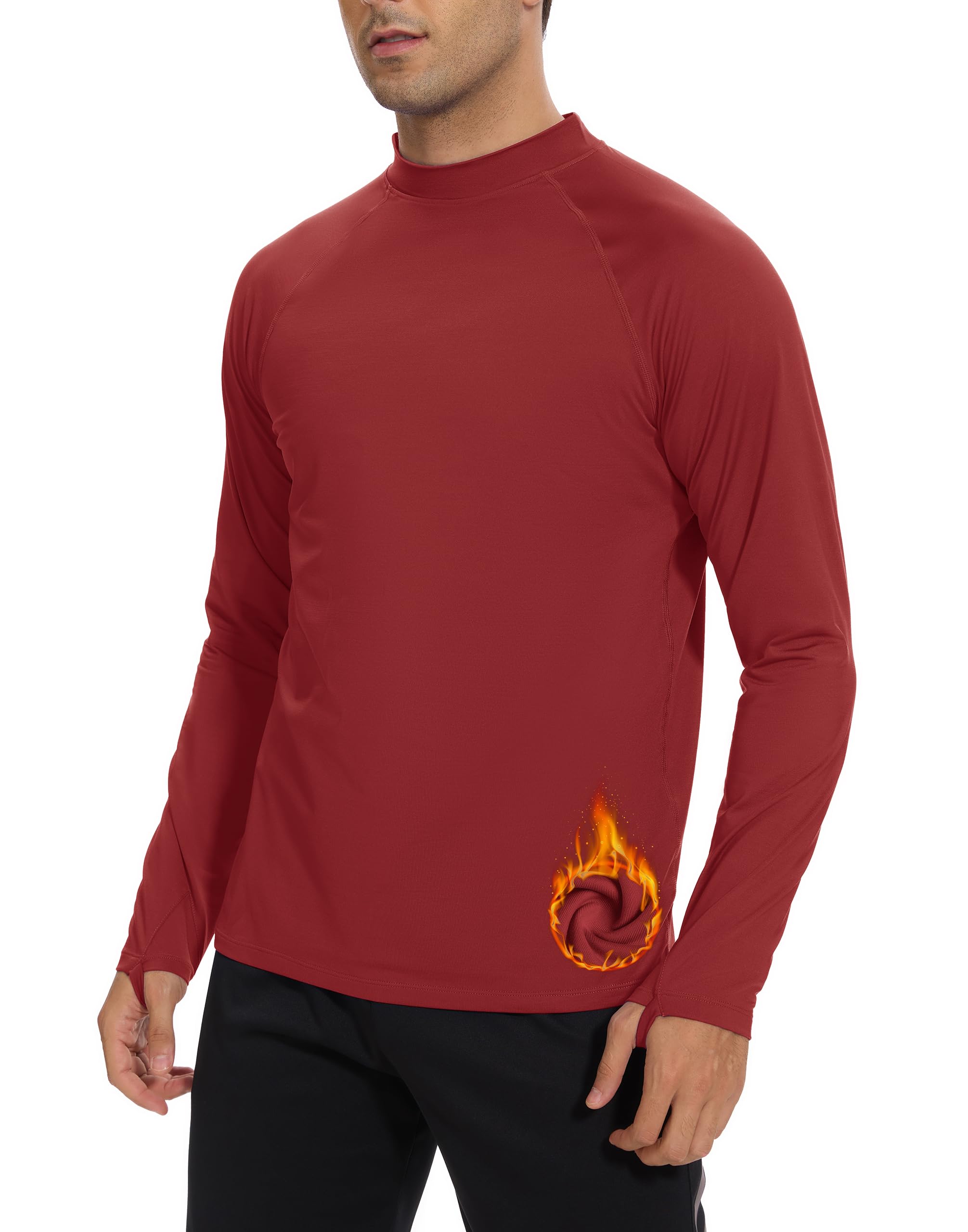 Fleece Mock Turtleneck Thermal Shirts:Its made of polyester/spandex blend fabric with high density fleece lined,lock your body heat well,perfect heat retention minimizing heat loss making perfect for outdoor activities in cold weather.