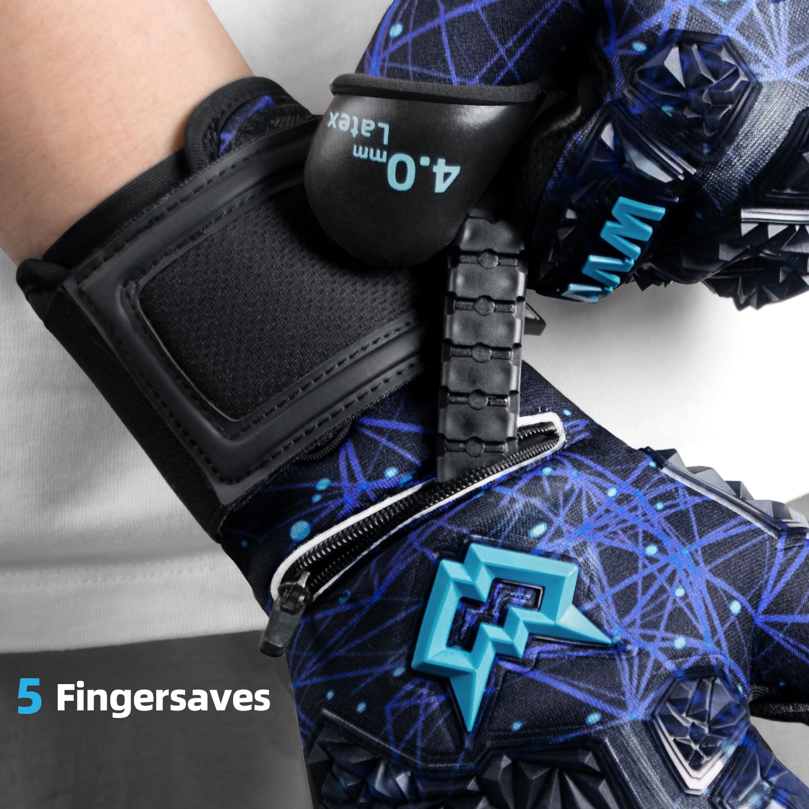 5 DETACHABLE FINGER SAVES: The soccer goalie gloves use 5 detachable finger saves (general gloves only have 4 excluding the thumb), which provides more comprehensive protection. Whether you are a professional or an amateur, it can provide you with excellent protection.