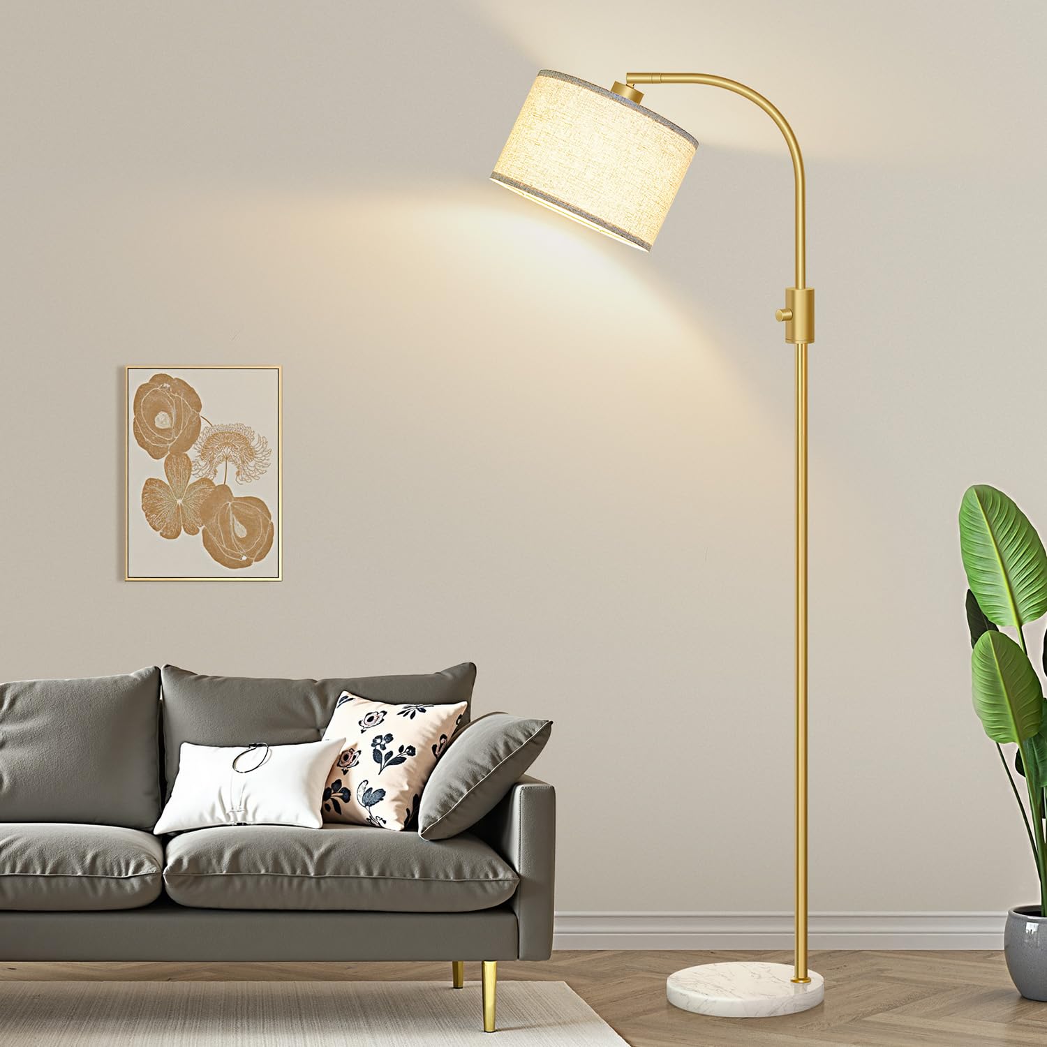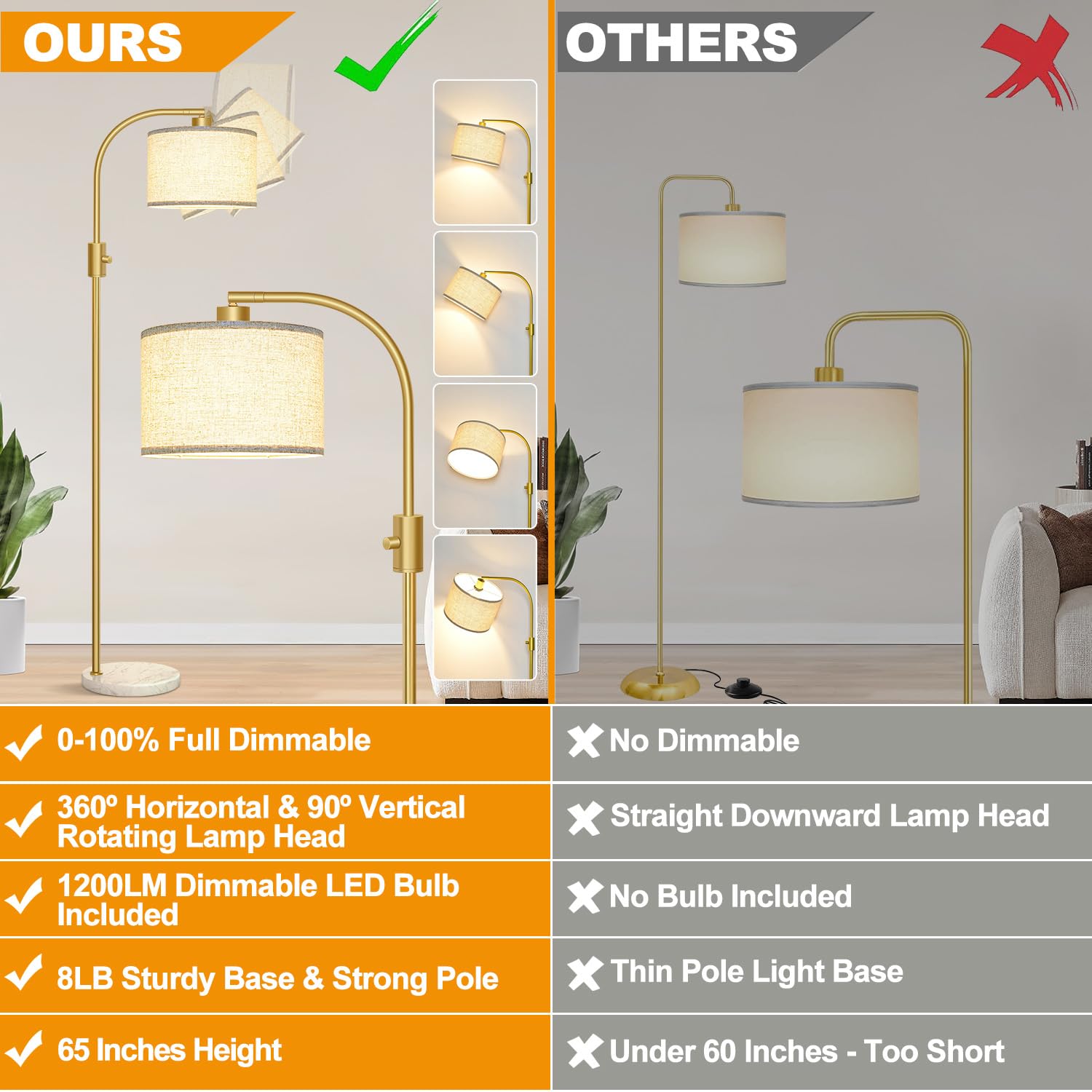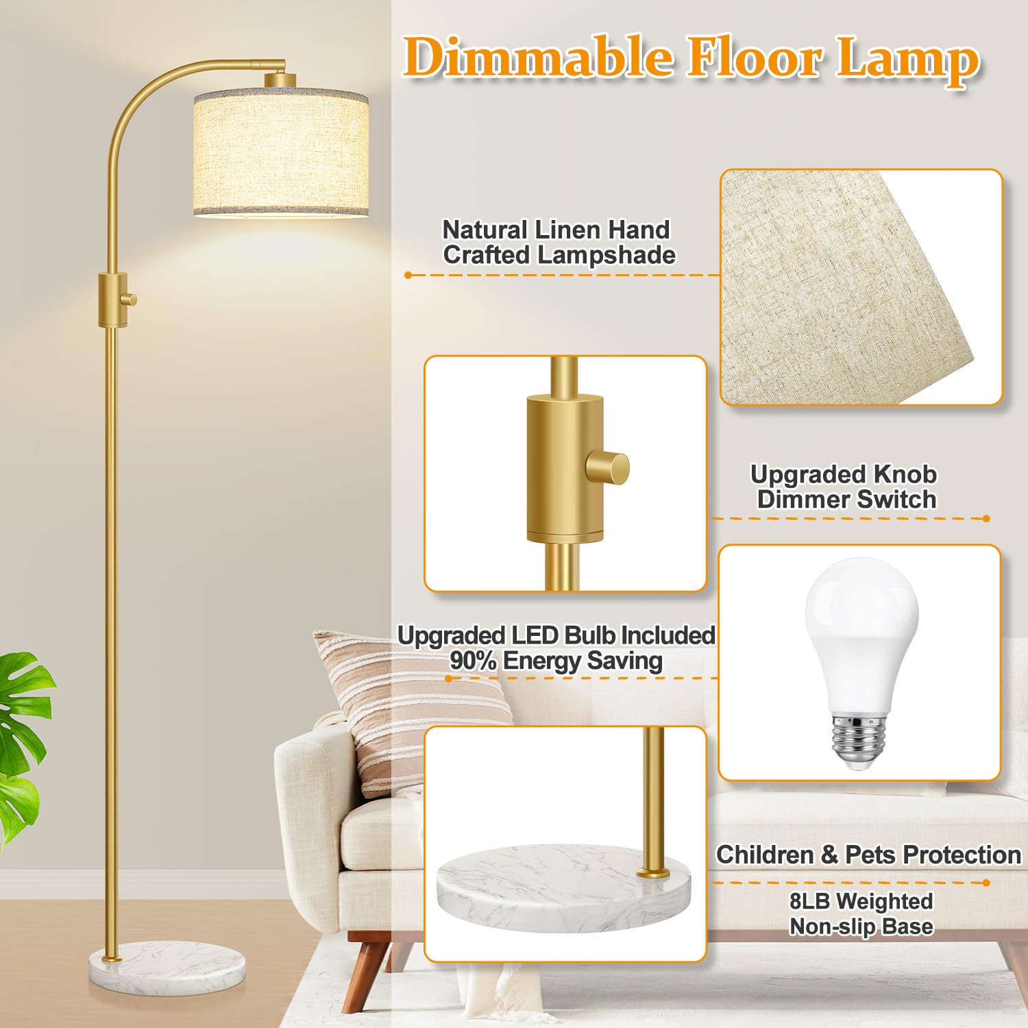 Modern Floor Lamp with 0-100% Fully Dimmable Brightness :Compared to traditional non-dimmable living room floor lamps, our unique floor lamp offers a full stepless dimming function(0 - 100%), making it adaptable to various room styles and lighting requirements you need. This gold floor lamp with marble base has a convenient knob switch – simply twist it to customize your favorable lights of floor lamps for living room and bedrooms