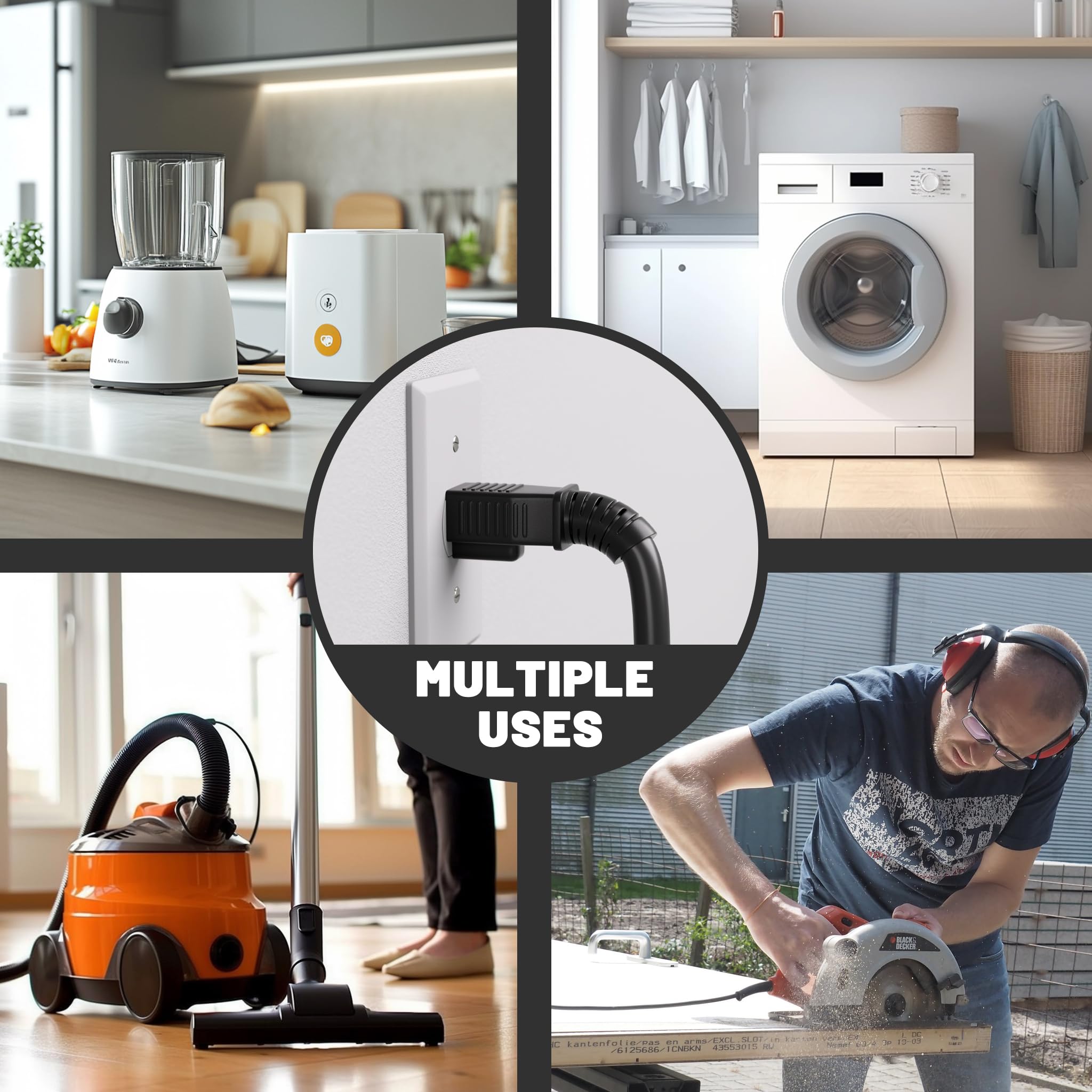 Multiple applications: 10ft indoor outdoor extension cord is commonly used for small appliances, offices, DIY power tools, TVs, stereos, lamps, and a variety of other devices, and the black extension cord 10 ft is also great for camping, picnics, and other outdoor activities that require power