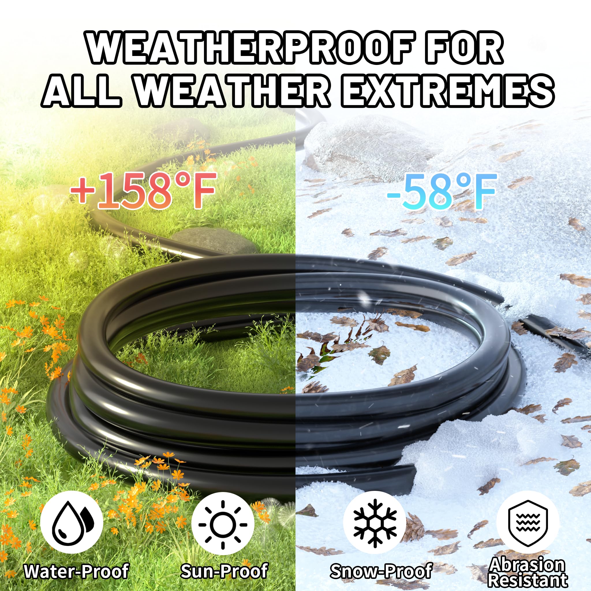 Commitment to quality: This heavy duty black 10 ft extension cord is made of pure copper core with thick insulation, safe 1500V high voltage test, waterproof extension cord for outside IP65 waterproof material for extreme weather, soft and electric cables for easy repackaging and recycling