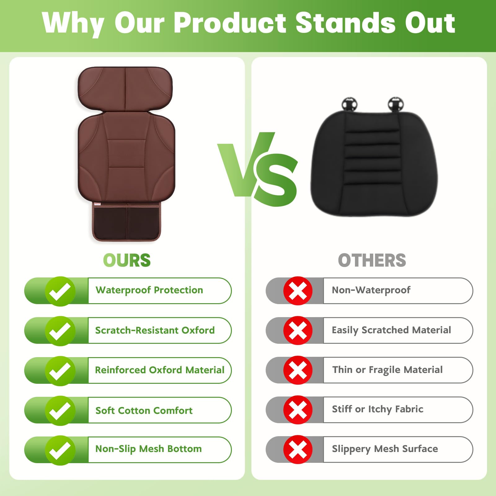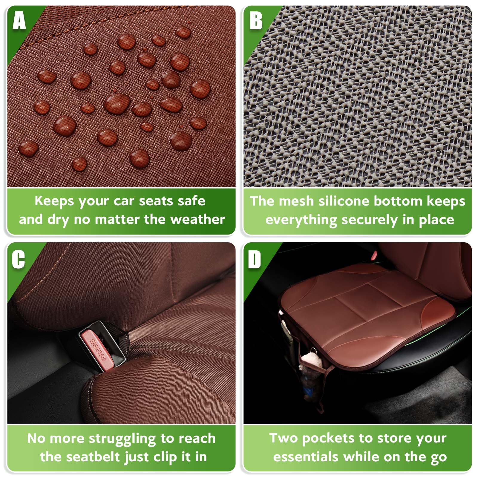 Waterproof and Easy to Clean: The waterproof, high-performance material makes cleaning up spills and stains a breeze. This durable, easy-to-maintain car seat protector is perfect for everyday use and ensures long-lasting protection for your car seats