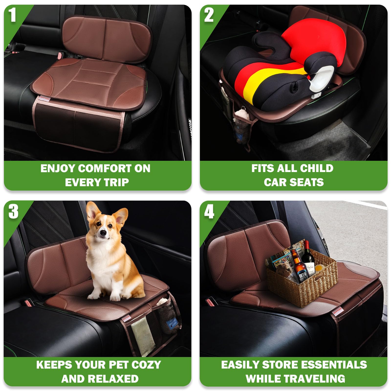 Full Protection for Your Car Seats: Designed to protect your car seats from damage caused by baby car seats, including scratches, indentations, and stains, this seat protector under baby car seat helps preserve your vehicle’s seats, maintaining their original appearance