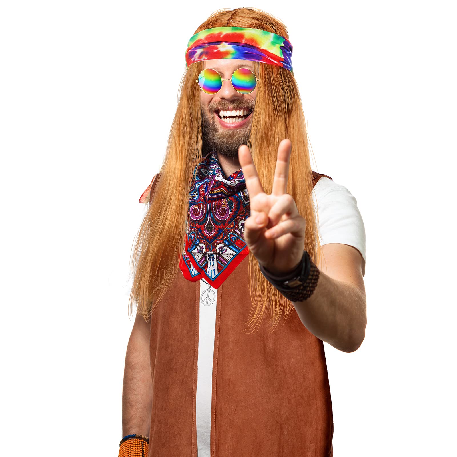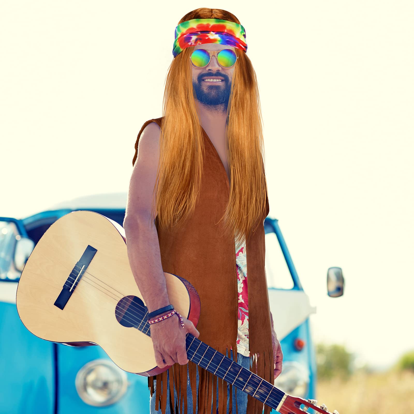 Package contents: there are 1 piece mens hippie vest with tassels, 1 piece blonde wig with hair net, 1 piece necklace, 1 piece magic headband, and a pair of sunglasses, which will make you different from others on Halloween Party