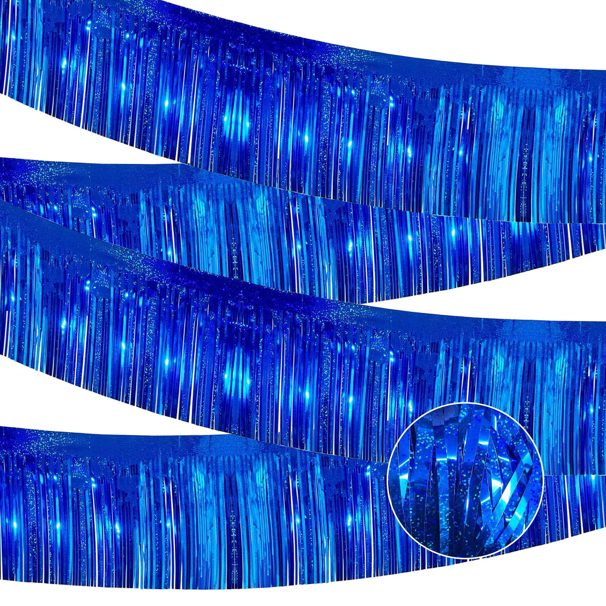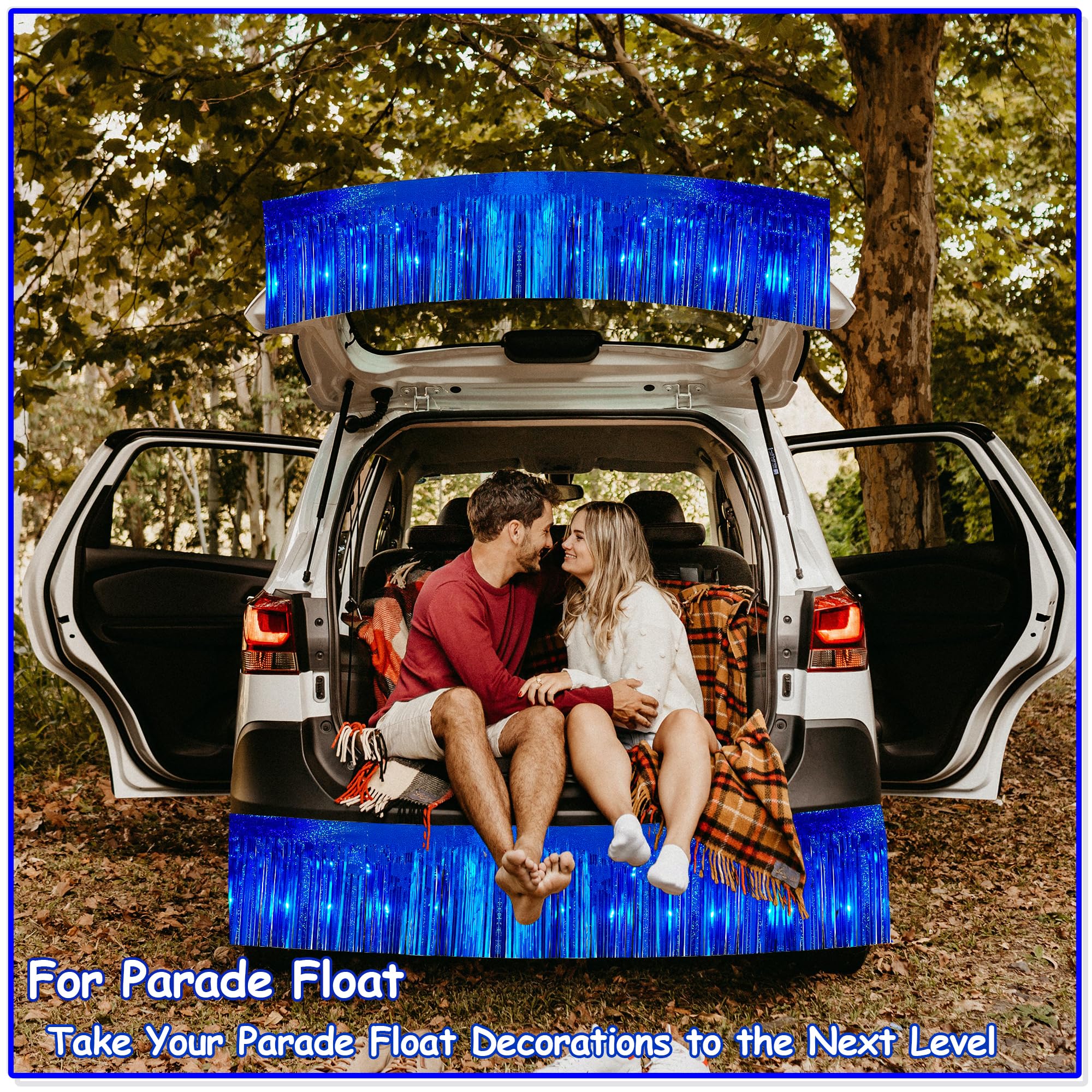 PACKAGE INCLUDES: Comes with 4 packs of glitter Royal Blue fringe, Each garland is 10*1 ft/3*0.3m (L*W ), Enough quantity and more shiny, you can cut it into any size to meet your decoration needs. With these festive tassel streamers, you can take your parade float decorations and party to the next level