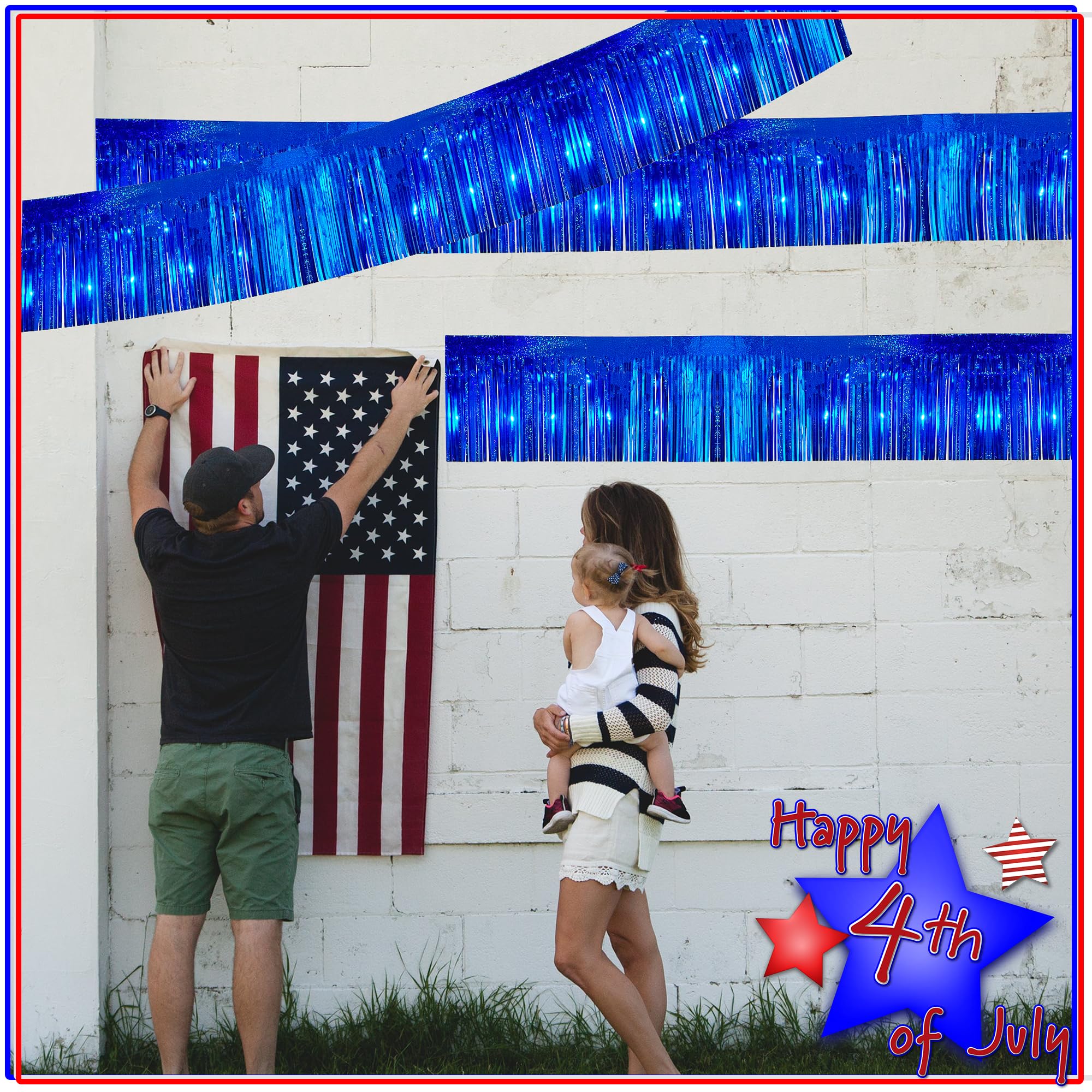 WIDE DECORATION: These glitter royal blue fringe foils are perfect for parade floats, decorative metal trailers, graduation parades, wedding car decorations, homecoming, classroom decorations, stage skirting, wedding, birthday party, bachelorette party, 4th of July, Christmas parades and more. The glitter foil fringe garland is perfect for indoor & outdoor decorations and themed parties