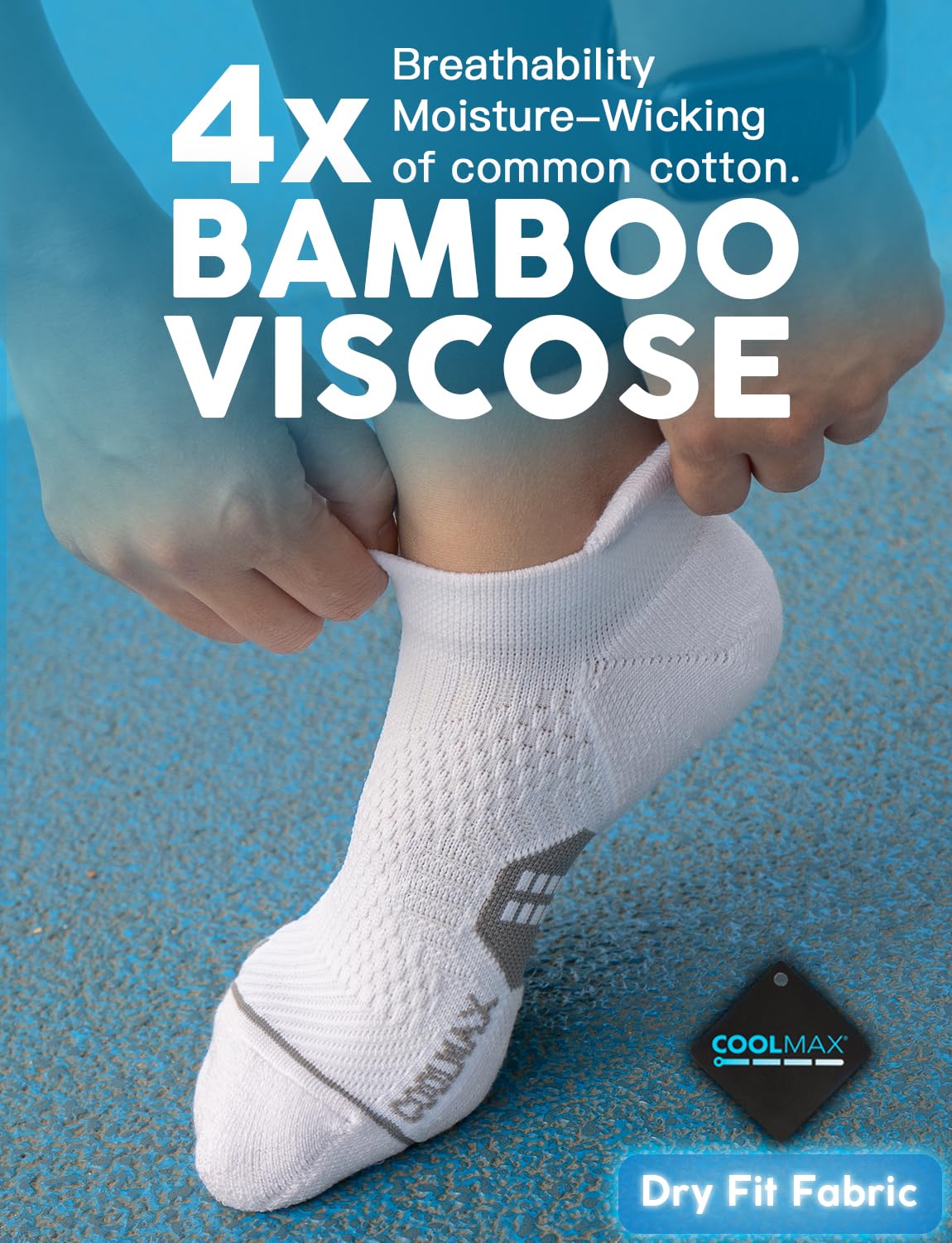 【Moisture-Wicking & Odor-Free】: Made from a blend of Coolmax yarn and bamboo viscose, these socks are four times more effective at wicking moisture than cotton socks. Coolmax absorbs sweat faster, keeping your feet cool and dry, while bamboo viscose prevents odors for fresh feet throughout your run.