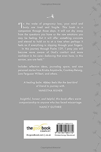 Devotions to help those grieving the loss of an unborn child. Using Psalm 139, Abbey Wedgeworth walks alongside women suffering the heartbreak of miscarriage. Having experienced the sorrow of miscarriage herself, she acknowledges the isolation commonly felt and the impact that such an experience can have on faith. The 31 biblical reflections in this beautiful and comforting book remind grieving women that God sees them, knows them, loves them, and is actively caring for them. These precious verses will show women that God can bring comfort, assurance, protection, and purpose in the very sorrow that they are experiencing. Includes personal stories of pregnancy loss from others, including Courtney Reissig, Kristie Anyabwile, and Eric Schumacher encouraging sufferers that they are not alone. It is a very helpful book to give to women who are suffering in this way.