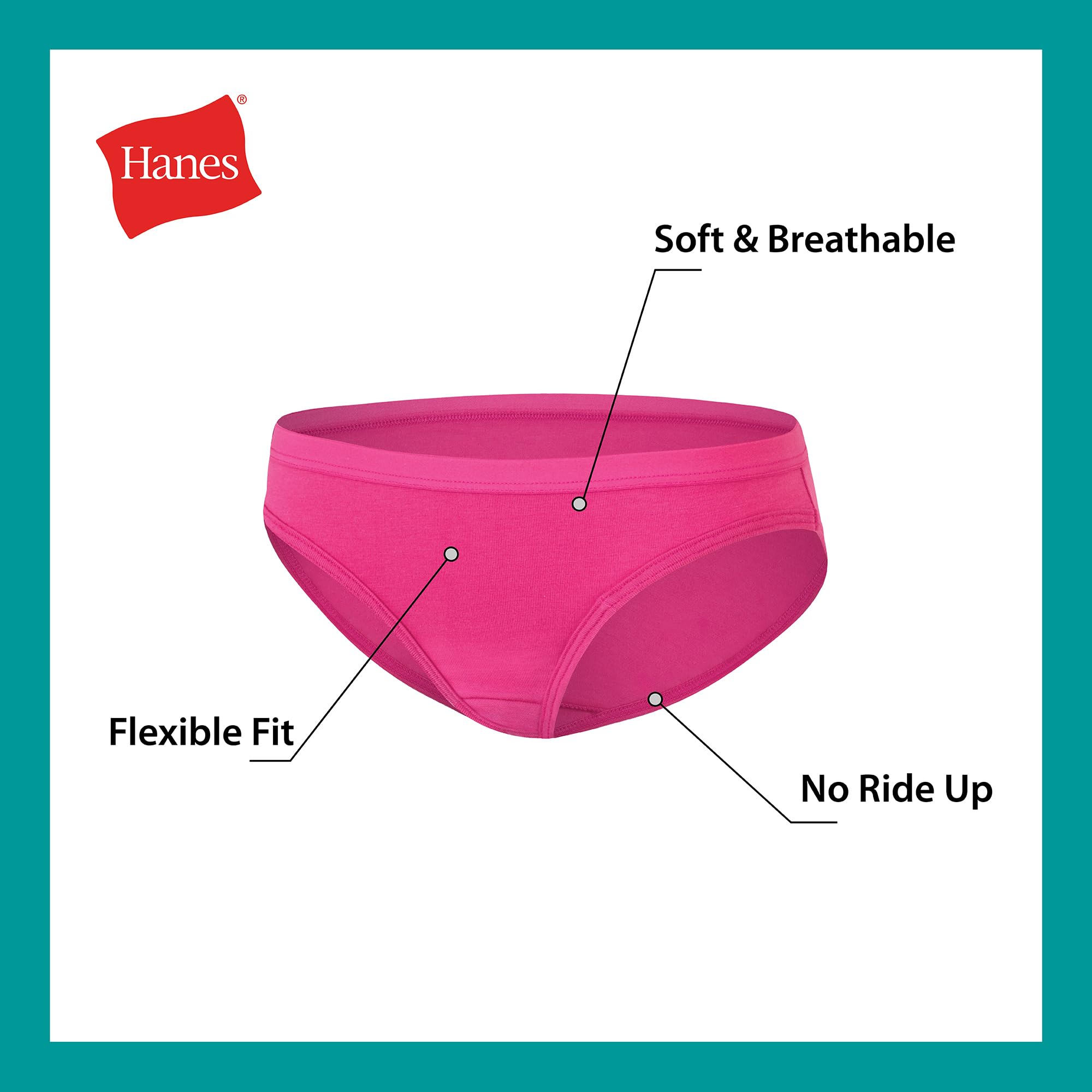 Description She'll move with ease and comfort when she's wearing these Hanes® brief panties. Made from a soft and breathable cotton blend, they have just the right amount of stretch to keep up with her every move. The smooth, flat elastic waistband sits gently on her skin, and the fabric-covered leg bands are designed to stay put. Plus, no more annoying tags to deal with - these girls' panties are completely tag-free. This classic brief-style underwear for girls offers a high-rise waist and full coverage back for a comfortable fit. And it's available in an assorted 12-pack, so she’ll have plenty of options.