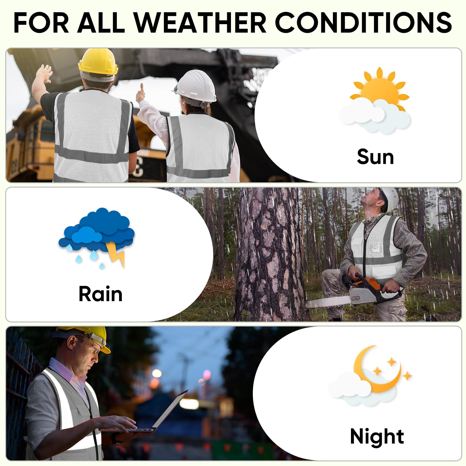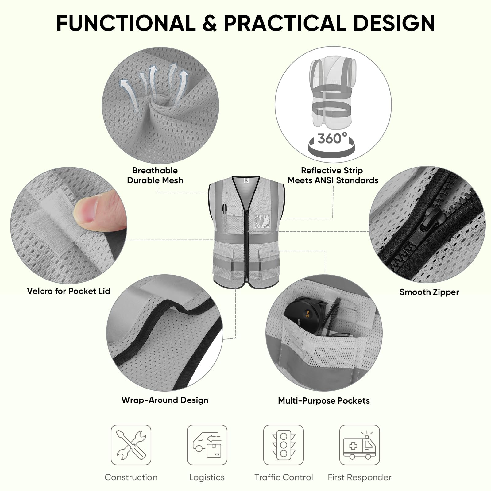 [WIDE APPLICATIONS] Our safety vest for men and women who get the job done. Great for construction workers, truck drivers, warehouse workers, traffic controllers, and first responders.