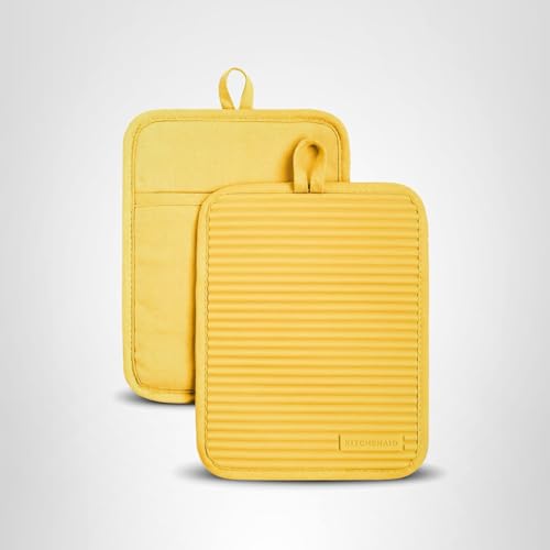 DURABLE, HEAT RESISTANT SILICONE - The KitchenAidRibbed Soft Silicone pot holders are heat resistant up to 500 degrees Fahrenheit to safely shield hands from the heat while cooking and handling hot pans and dishes.
