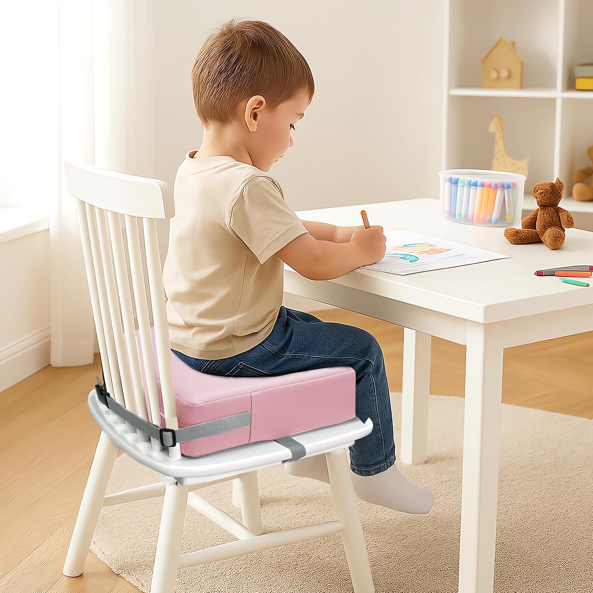 Lightweight and portable: dining chairs' toddler booster cushion is very lightweight, can be taken anywhere at any time, and not only can be used at home but also in outdoor picnics for use. Note: As the manufacturer updated the product packaging to compression packaging, the product will be opened within 24-48 hours to restore the original height
