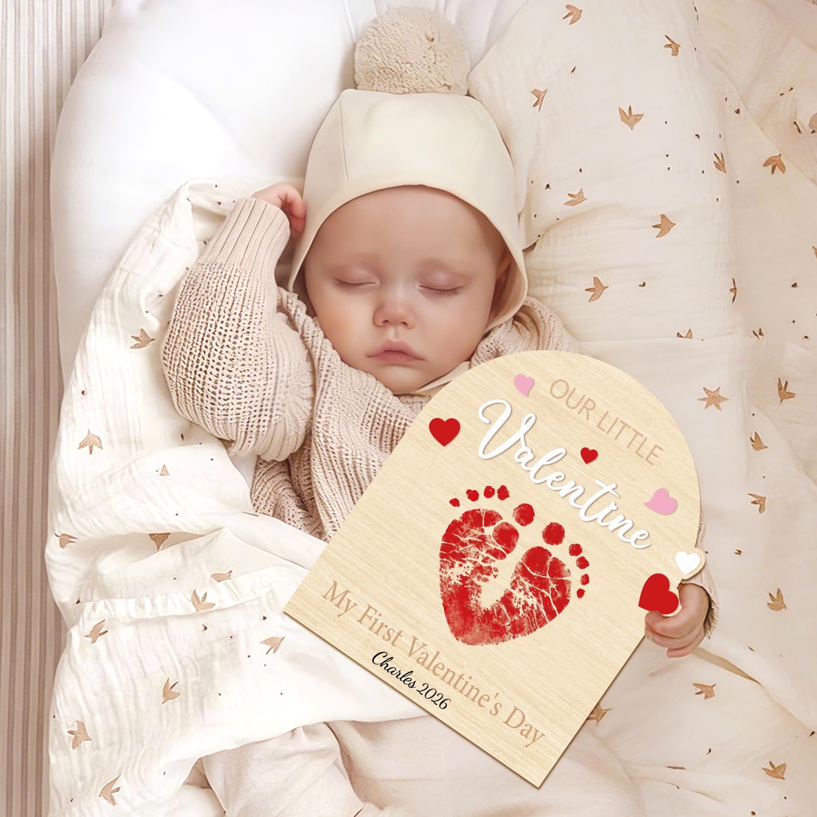 DIY Design: The Valentine's Day wooden sign can be personalized with the baby's footprints in the shape of a egg, and the name, date of birth, or text can be added to commemorate the baby's first Valentine's Day, making it a very creative gift.