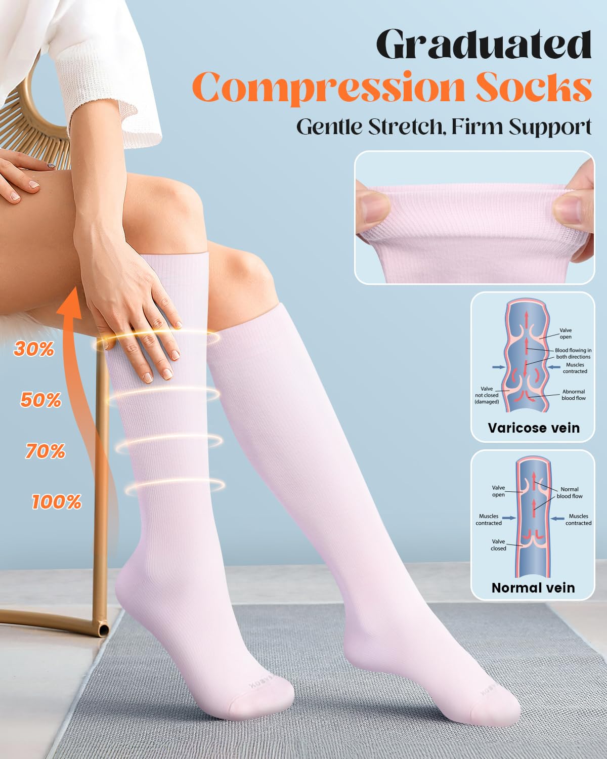 Stylish Colors for Every Occasion: Available in a range of colors and clean, modern designs, our womens compression socks are both cute and functional. Whether you're dressing for work, flying, or expecting, these compression stockings fit right in