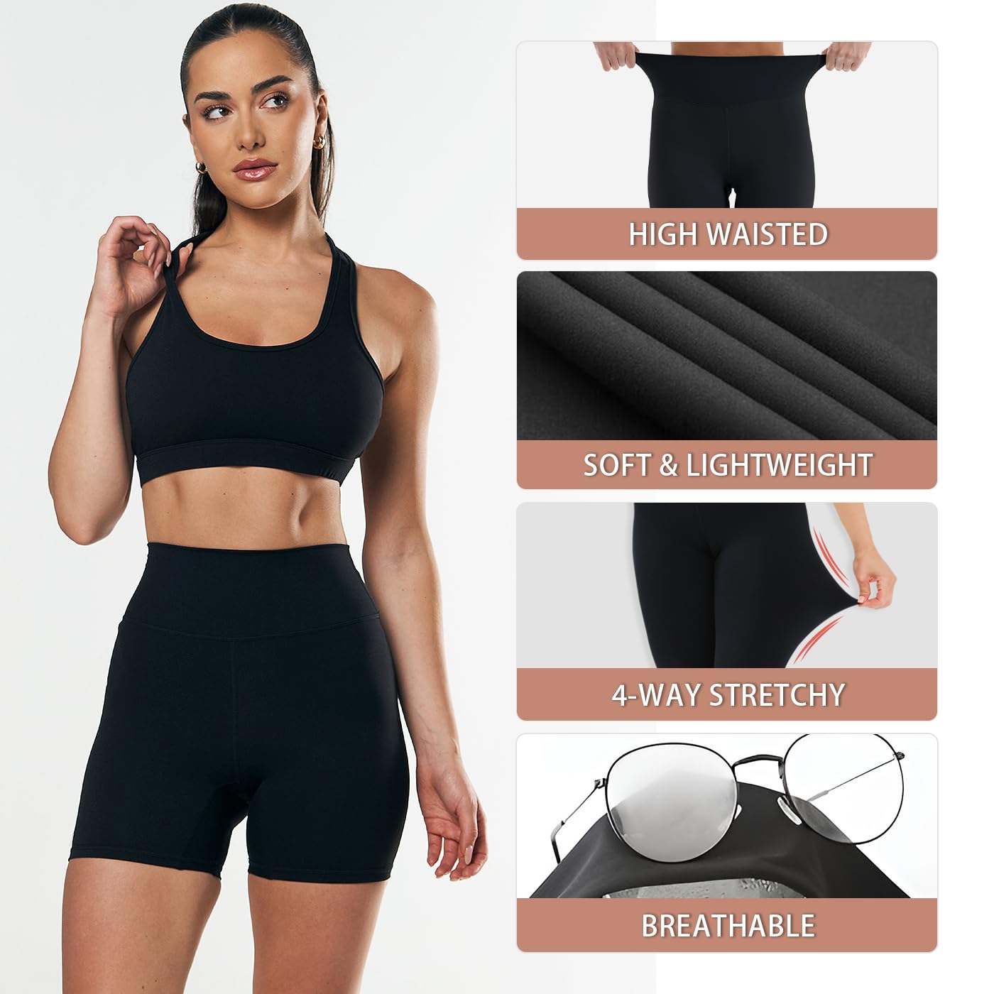 HIGH-WAIST CONTROL - Featuring a 5.3 inches fold-over high-waistband, these bike shorts offer excellent tummy control, contouring your body for a smooth and streamlined silhouette. They stay put whether you're bending, squatting, or striking yoga poses, ensuring both style and support.