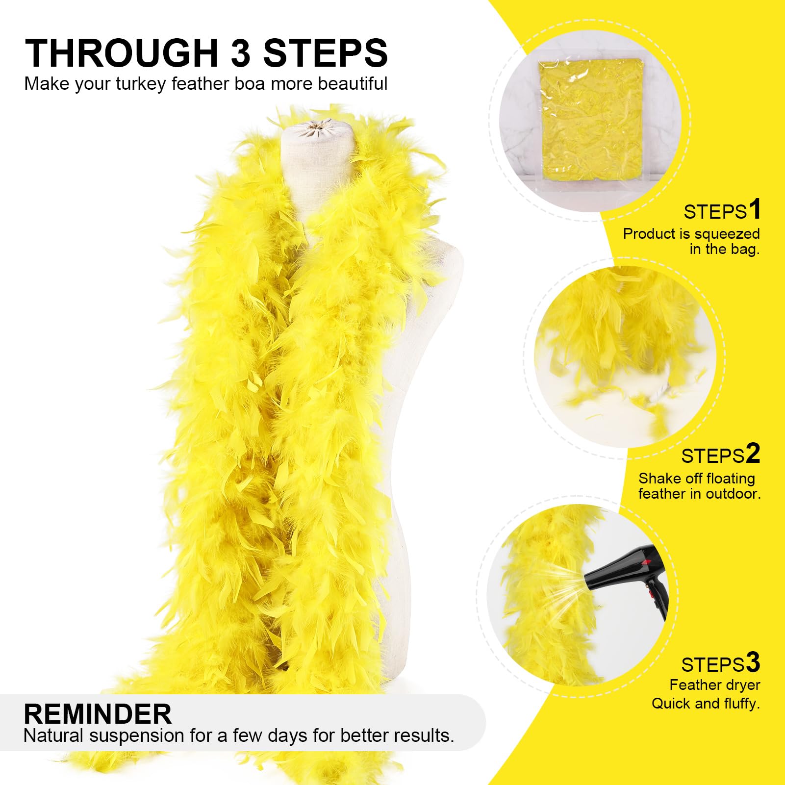 ❤️Precautions before use:Since our feathers are all natural and handcrafted,After you receive the boas, take them out of the package and shake them outdoor first, in order to get rid of debris and fallen feathers.Then hang it up for few hours before wearing. If you can hang up blowed few days, it will looks as the picture full and big.Of course,the longer you hang them up, the turkey feather boa will be more fluffy and the effect will be more stunning.