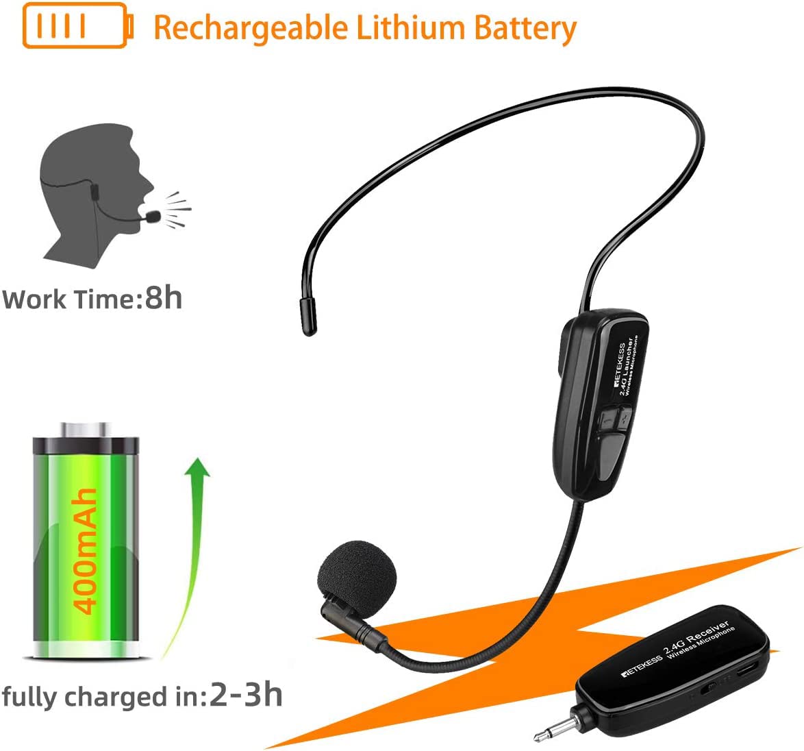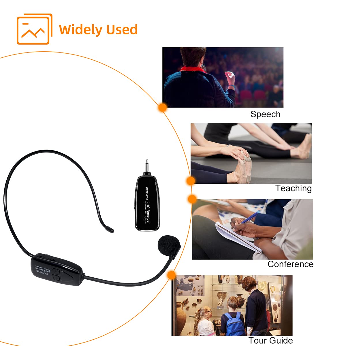 2.4G Wireless Mic; TT123 wireless microphone headset adopts global universal 2.4 GHz transmission; connect automatically within 3.2ft