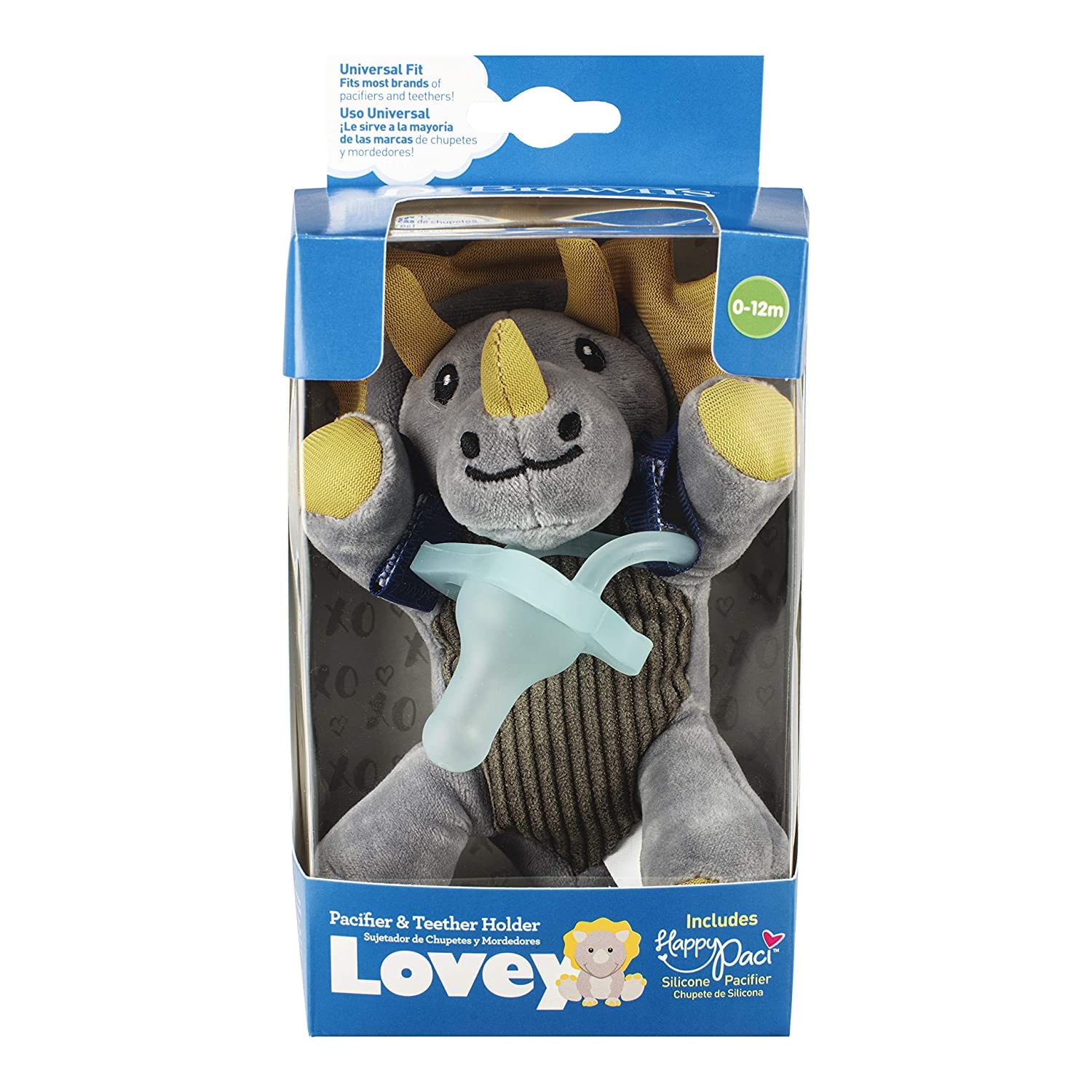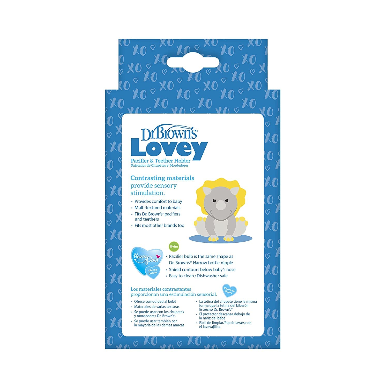 BABY PACIFIER HOLDER. Designed to keep baby’s binkies and teethers close by, Lovey holds any Dr. Brown’s pacifiers and teethers and most other brands. THE PACIFIER BABIES LOVE. Included Dr. Brown’s HappyPaci pacifier is 100% silicone with a contoured shield.
