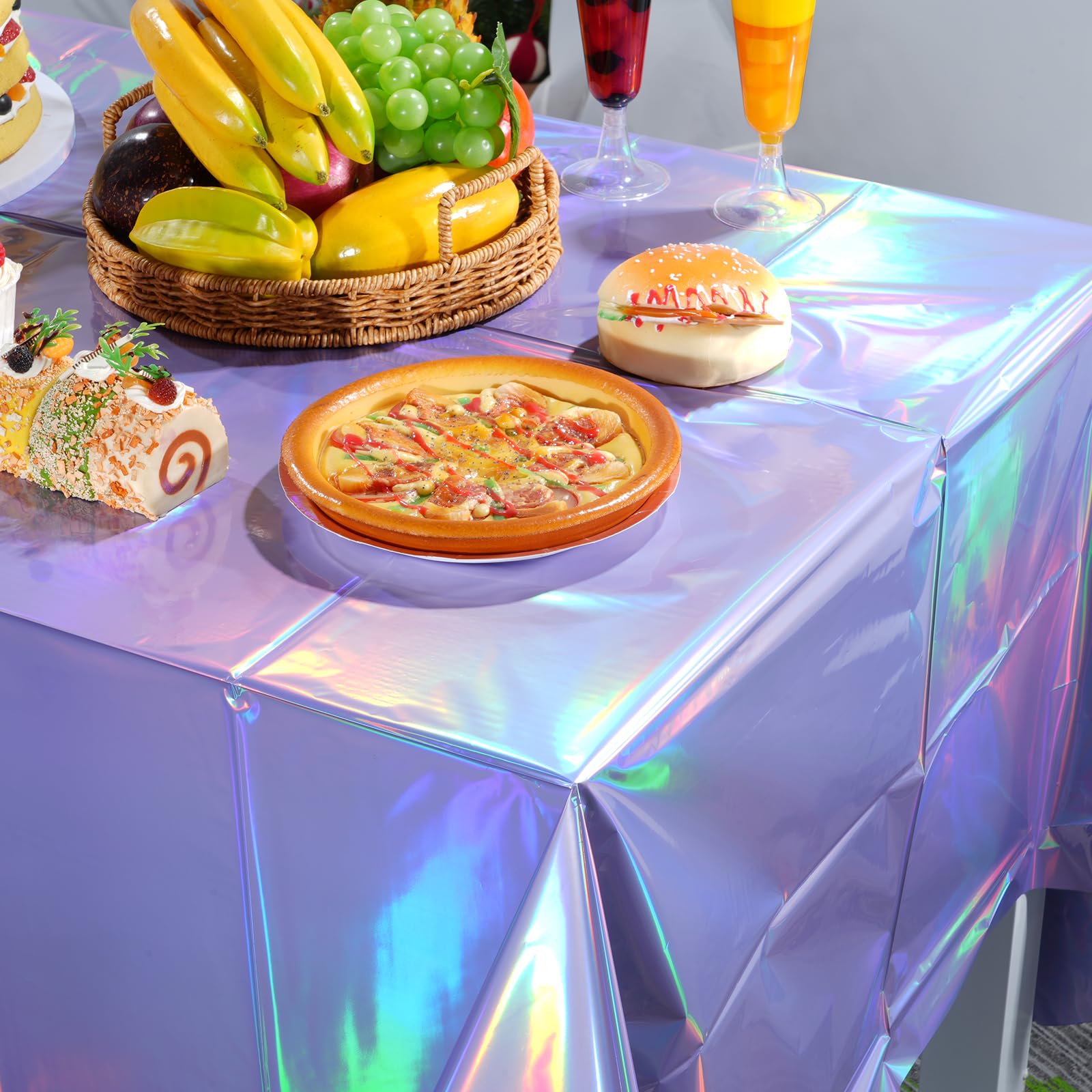 Shiny Design: Our iridescent light purple tablecloths feature with holographic iridescent surfaces that change colors under different lighting. The baby purple tablecloth is perfect for birthday and shiny-themed parties, adding a touch of sophistication to your event