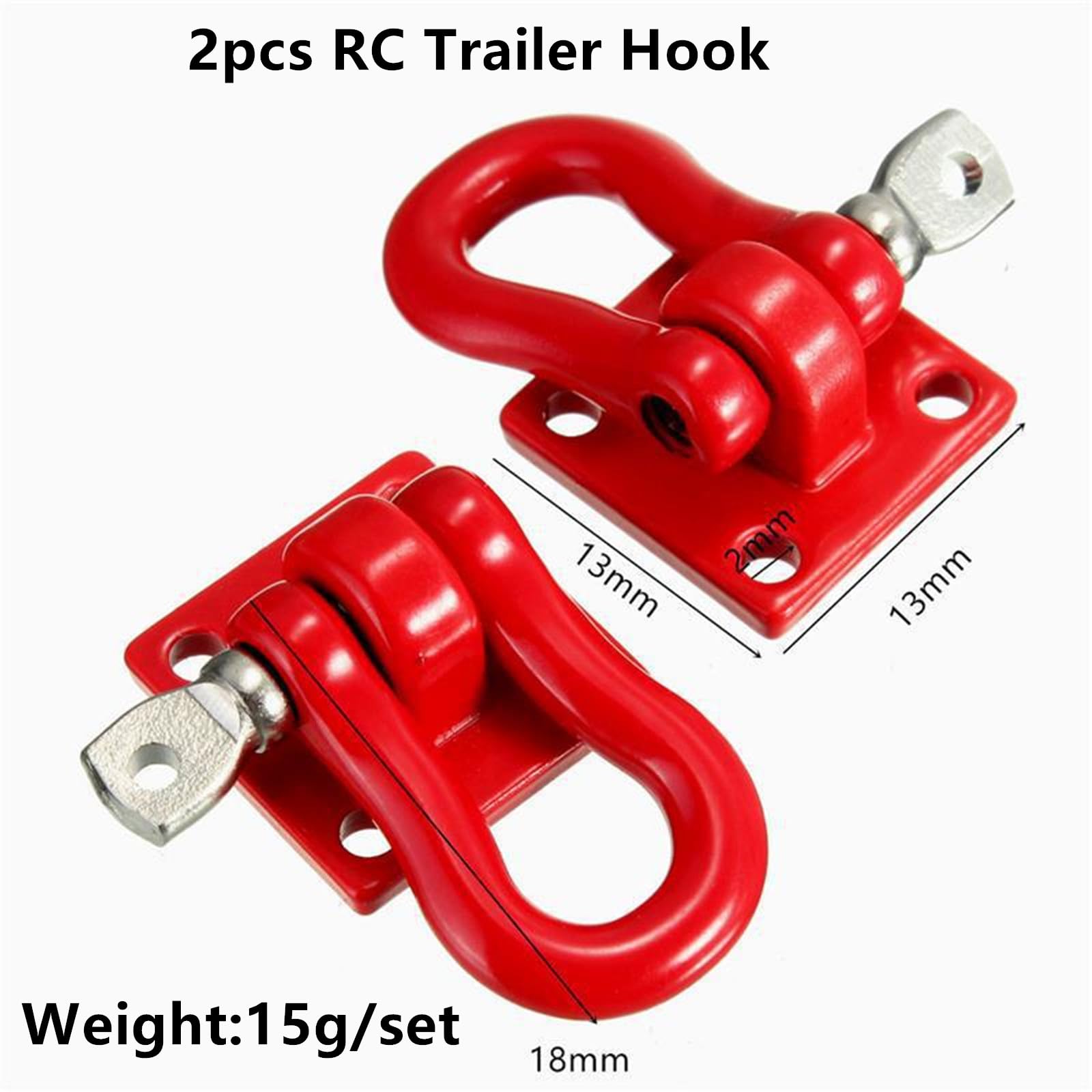 Features: ✔Purchase Note,its is simulation part for remote control car decoration,can not used for real car tow hooks ✔This 1/10 rc crawler car Trailer tow hooks are made of high-quality metal.The 1/10 scale rc accessoriesis excellent workmanship and perfect style ✔RC car trailer hooks buckle compatible with 1:10 Scale Crawler Truck Car ✔This 1/10 rc crawler accessories is easy to disassemble and install,More convenient to use. ✔RC car trailer hooks buckle Compatible with 1/10 RC Crawler Car Traxxas TRX4 SCX10 Redcat Axial RC4WD Tamiya Tamiya,etc ✔Package Include 2PCS Red or Black RC Car Trailer Hooks Buckle,8 x Screws and 8 x Nuts Specifications: ✔Material:CNC metal ✔Color: Red or Black ✔Quantity:2PCS ✔Weight:7.5g Package List: ✔2PCS Red or Black RC Car Trailer Hooks Buckle,8 x Screws and 8 x Nuts Note: ✔Light shooting and different displays may cause the color of the item in the picture a little different from the real thing. The measurement allowed error is +/- 1-3cm.