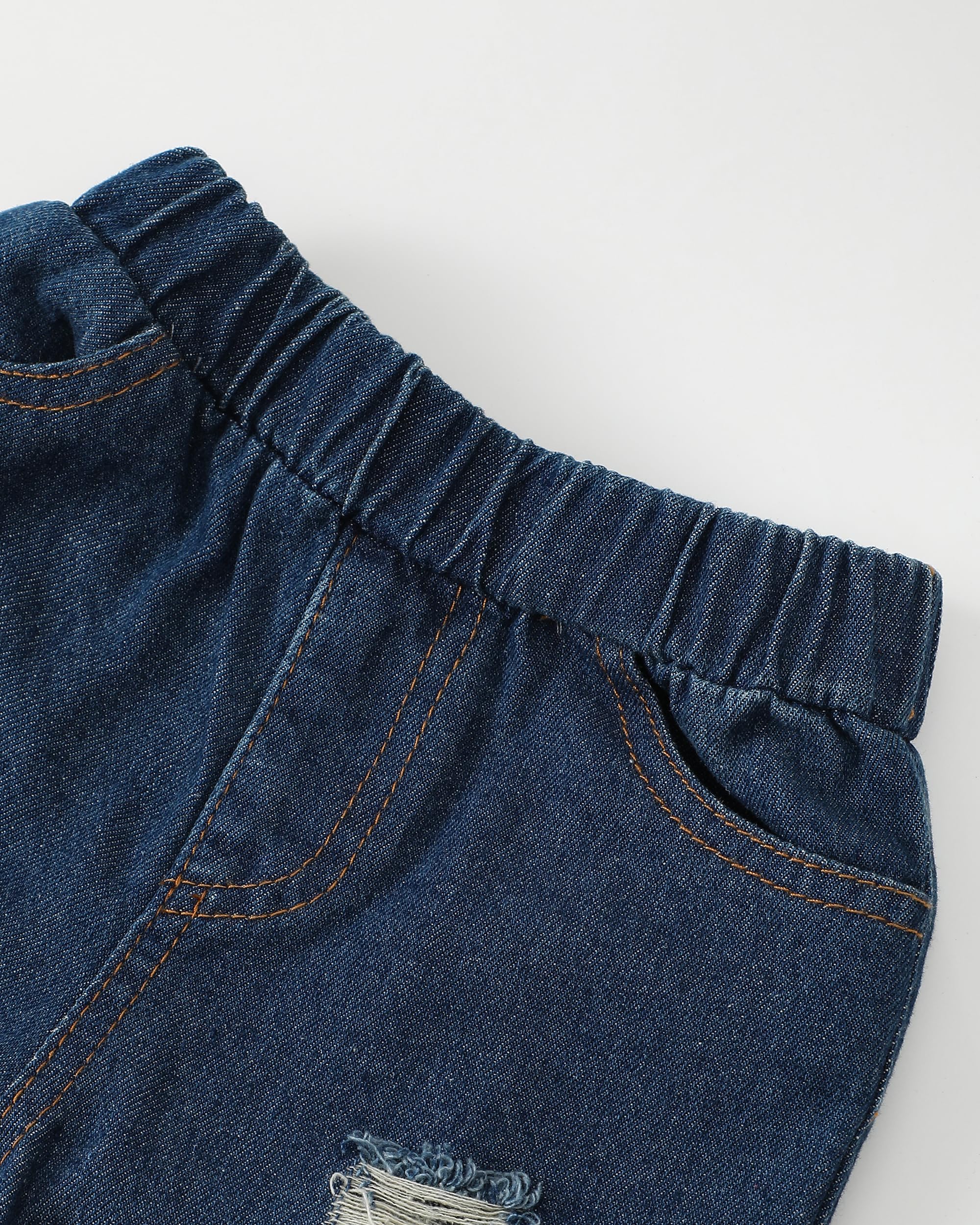 Package: 1 x toddler boy t-shirt + 1 x ripped denim pants. Hand wash is suggested at the first time. The toddler outfits boy do not fade, no shrinking and pilling after machine or hand wash.
