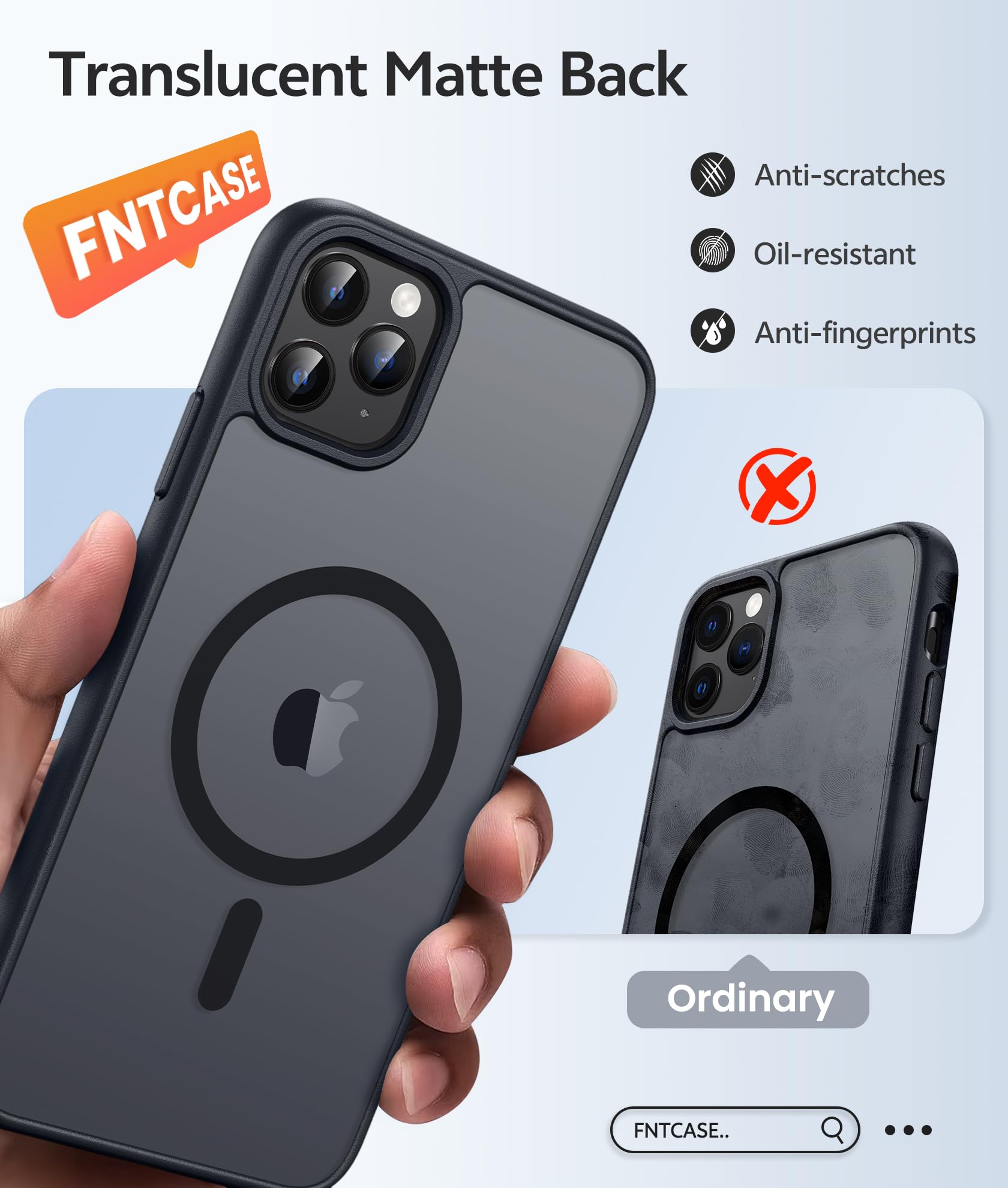 Matte Translucent Back: The Case for iPhone 11 Pro uses high quality matte TPU and PC translucent material, refined and elegant beauty without covering the iPhone logo. The frosted surface provides a comfortable hand feel, and the Nano antioxidant layer effectively resists stains, sweat and scratches