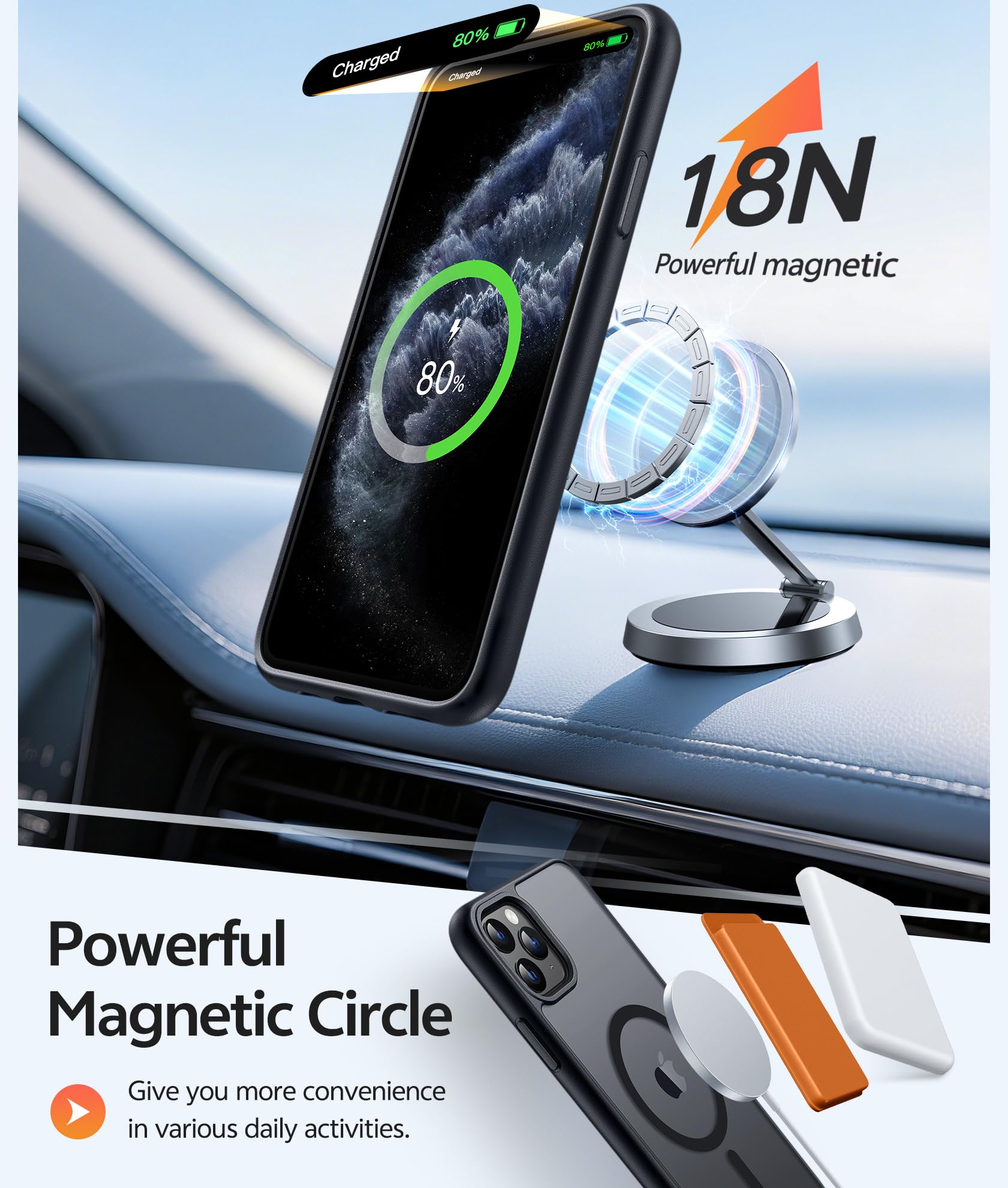 Strong Magnetic Charging: Fit for Magnetic chargers and other Wireless chargers. This iPhone 11 Pro Case has built-in 38 super N52 magnets. Its magnetic attraction reaches 2400 gf, which is almost 7X stronger than ordinary, therefore it won't fall off no matter how it shakes when you are charging. Aligns perfectly with wireless power bank, wallets, car mounts and wireless charging stand