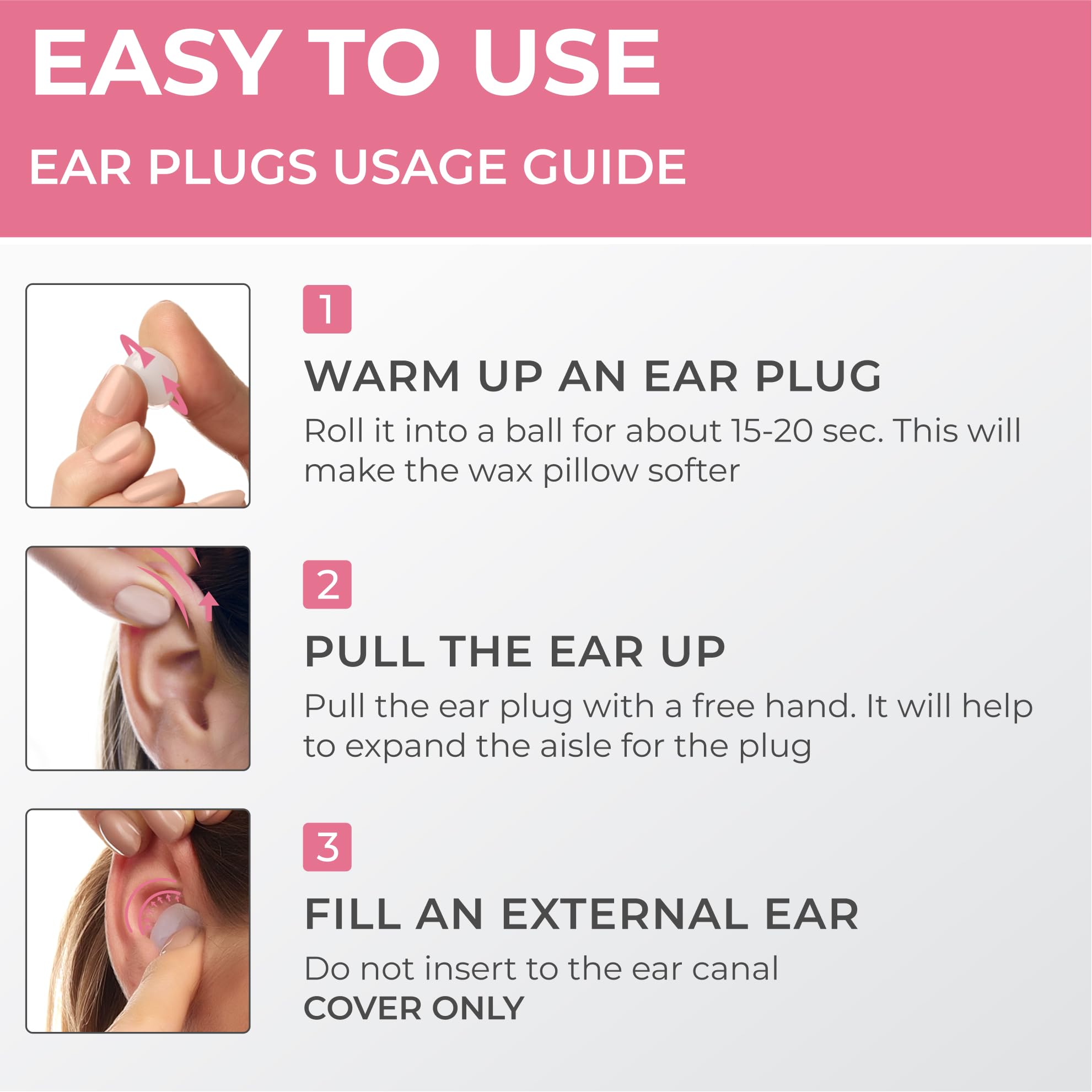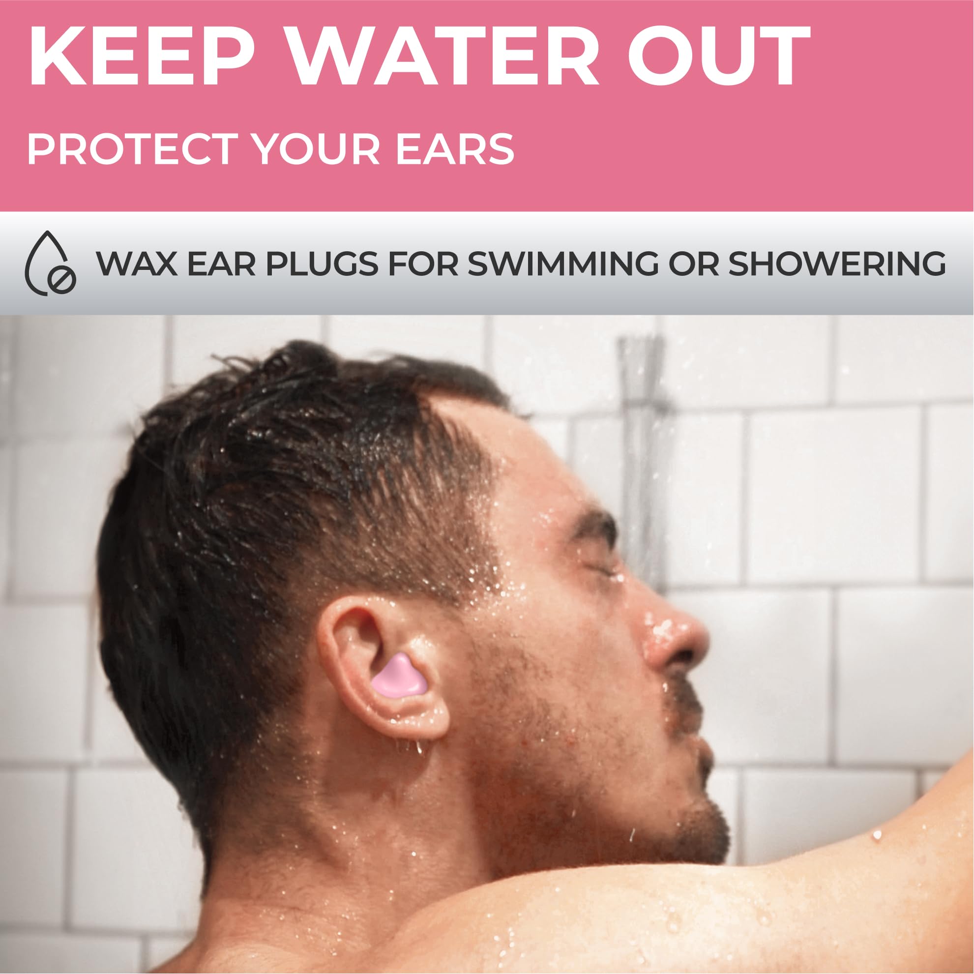 Ear protection in water: PQ Wax Gel Swimming earplugs are waterproof, so they protect your ears from water when swimming or taking a shower. Wax earplugs don’t fall out and don’t pressure your ears like rubber ear plugs