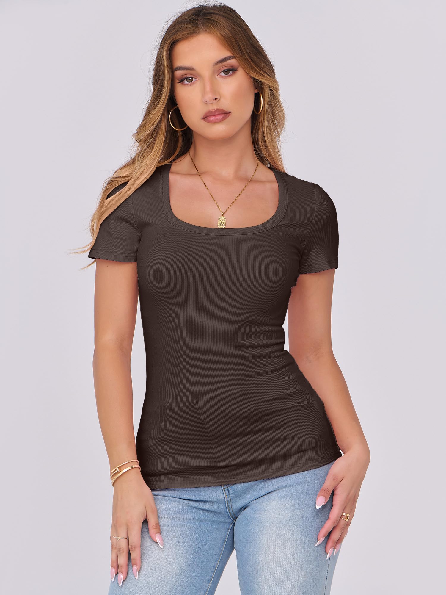 Features - Womens summer tops are designed with ribbed knit, scoop neck, short sleeve, slim fit. Suitable for daily wear, home, work, street wear, party, dates, vacation, shopping, cafes and other casual occasions.
