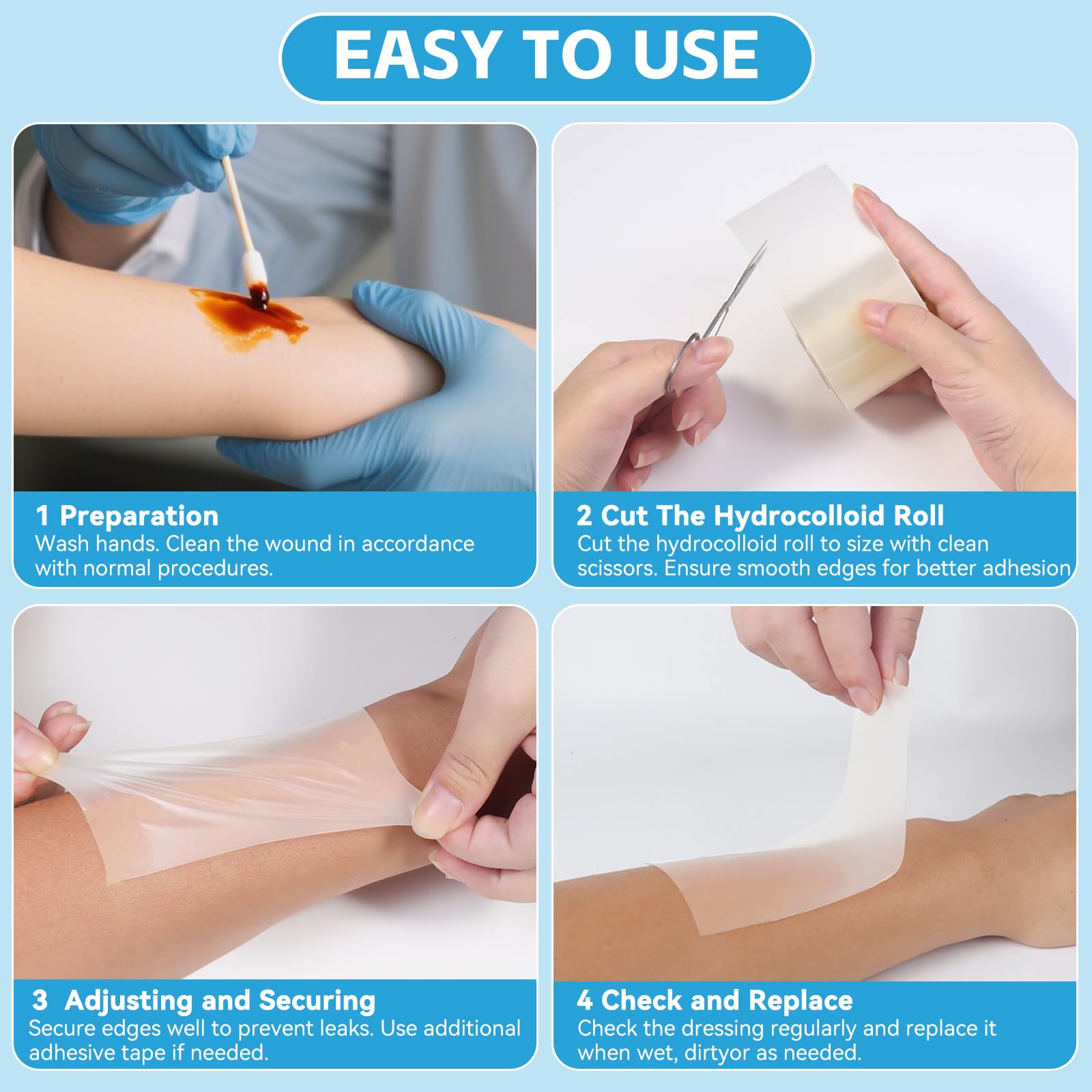 Customizable Application - Hydrocolloid roll can be cut to different sizes and shapes according to the wounds for personalized cover