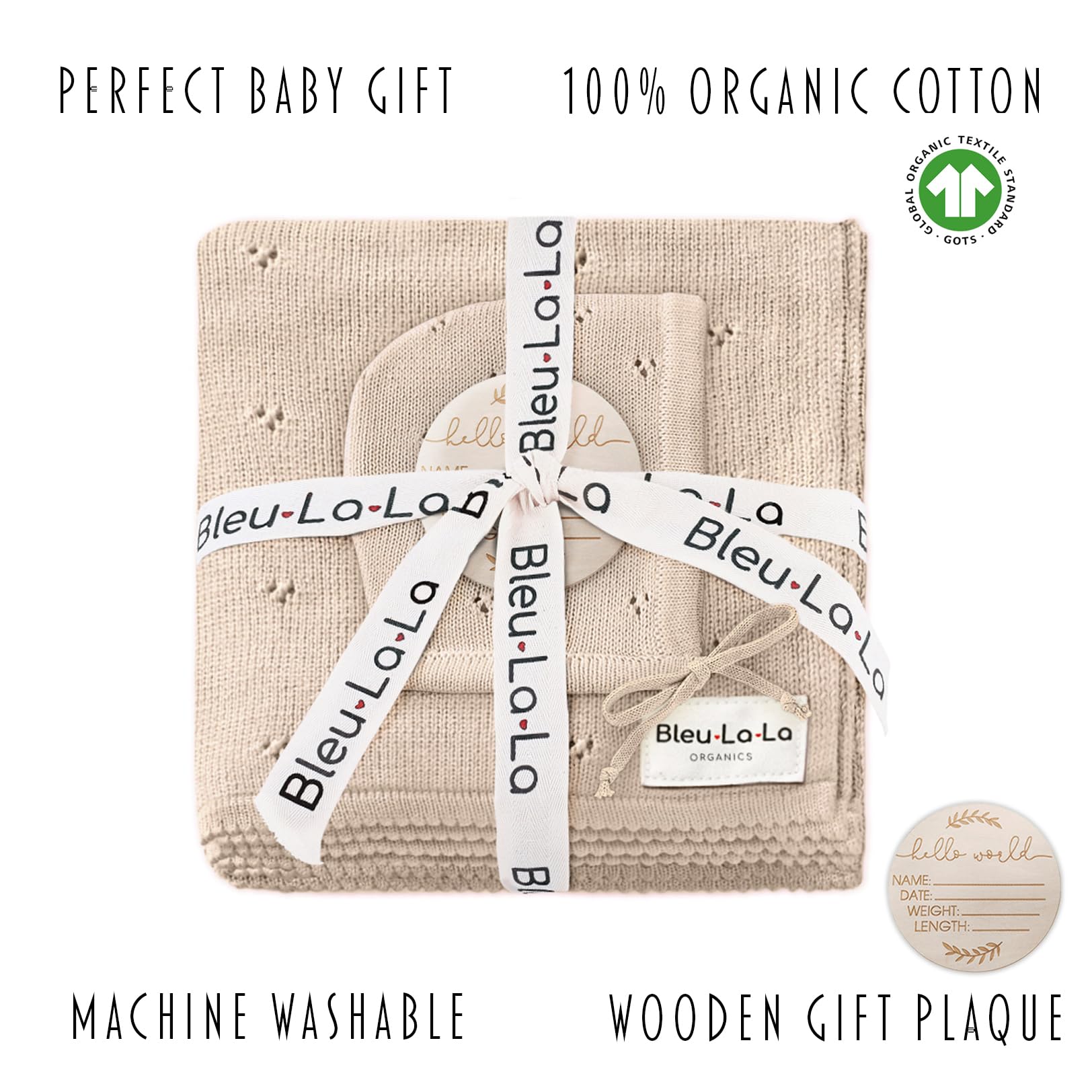 Perfect for Gifting: Our cotton knit blanket and hat set comes beautifully wrapped with our monogrammed ribbon, making it an exquisite choice for a baby registry, baby showers, or a holiday gift. It's a thoughtful and practical present that every new mom will appreciate.
