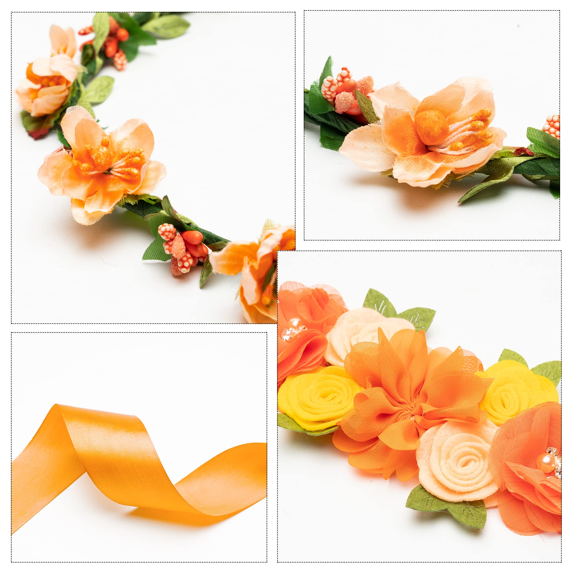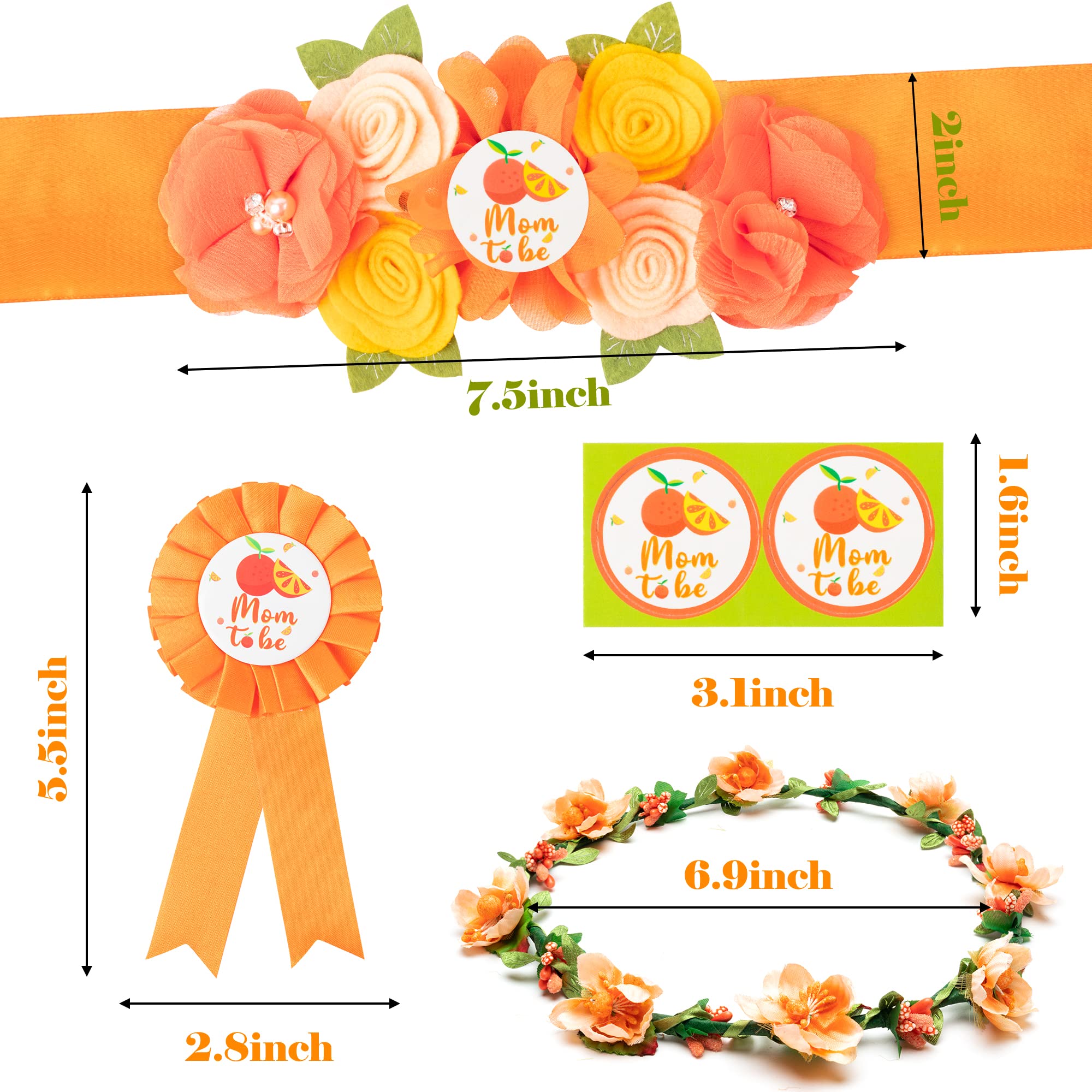 Super Value Kit - The package includes 1pcs maternity sash, 1pcs "Mom To Be" corsage, 1pc "Daddy To Be" corsage, 1pc orange leaf plum wreath headdress and 2pcs . The orange pattern design implies new life and hope, it is suitable for celebrating the arrival for the baby and bring a unforgettable memories to everyone.