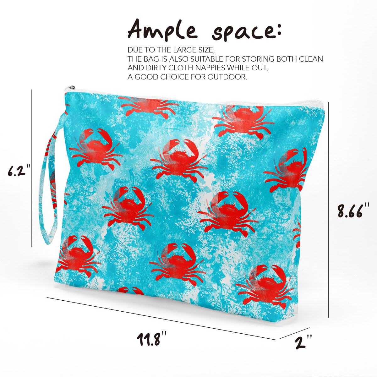 Ample space: the size of the bag is approximately 11.8 x 8.66 x 2 inches. It is designed with zipper, easy to open and close. Comes with a handle, you can hang the bag on the door knobs, towel rod, anywhere you want. Due to the large size, the bag is also suitable for different kinds of cosmetics and other stuff, a good choice for indoor outdoor.