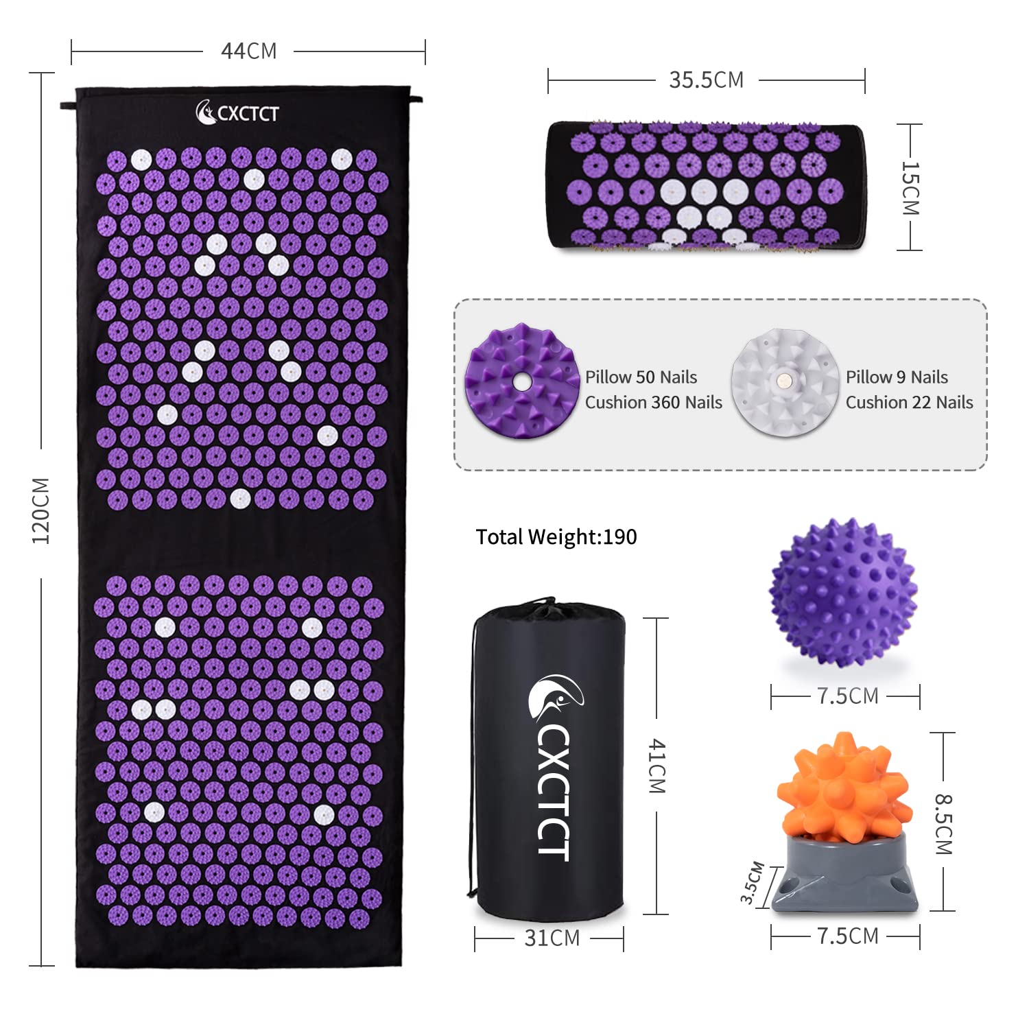HIGH QUALITY:The acupressure mat and pillow set has an internal acupressure point massage of high elastic medical sponge,skin-like touch,and removable and reusable, easy to clean.made of 100% cotton , environmental friendly and non-toxic. Our extra long acupuncture mat have over 12000+ ergonomically engineered spikes activate the innate healing response,which speeds muscle recovery .compared with traditional acupressure mat set, our extra long acupuncture pad set effects are more obvious.