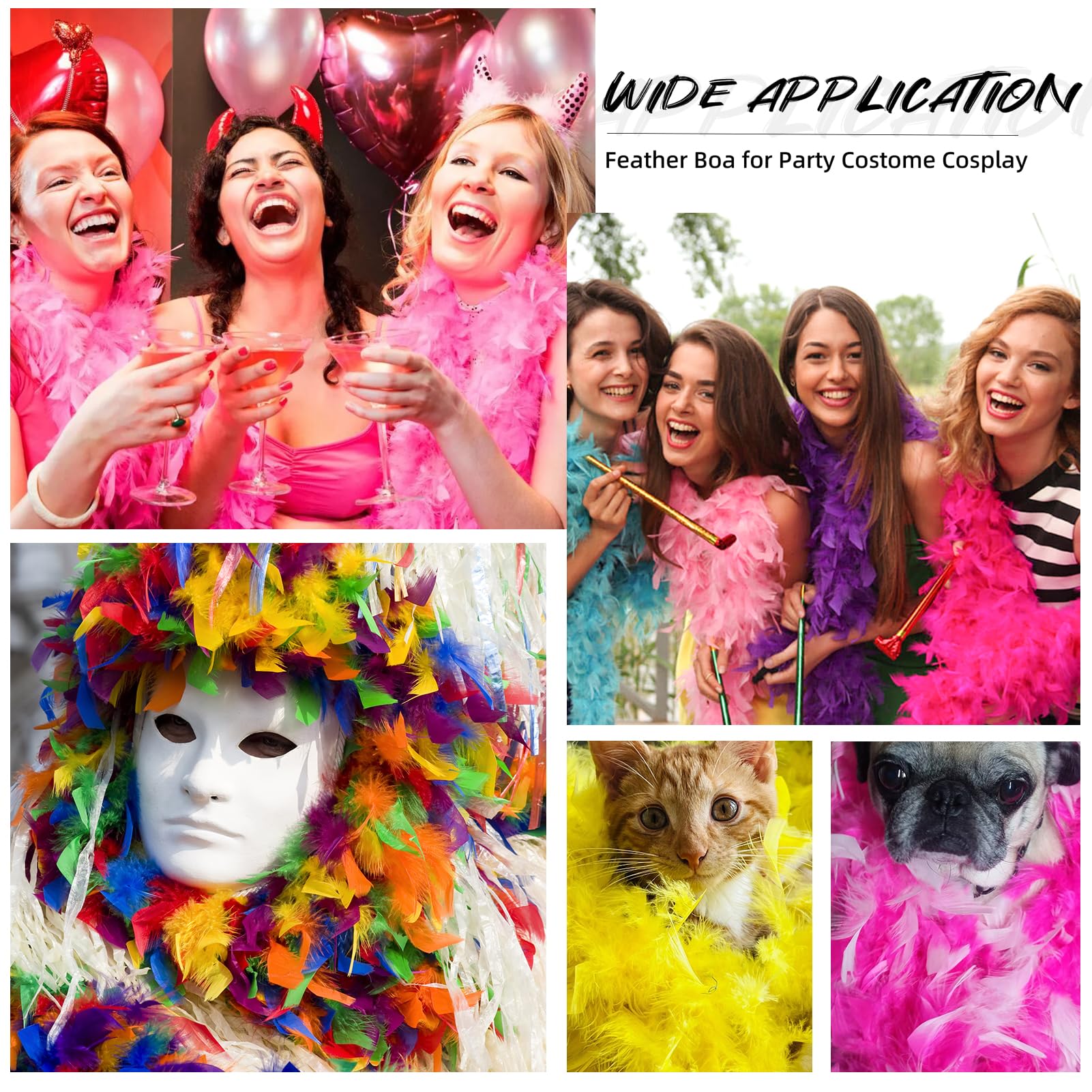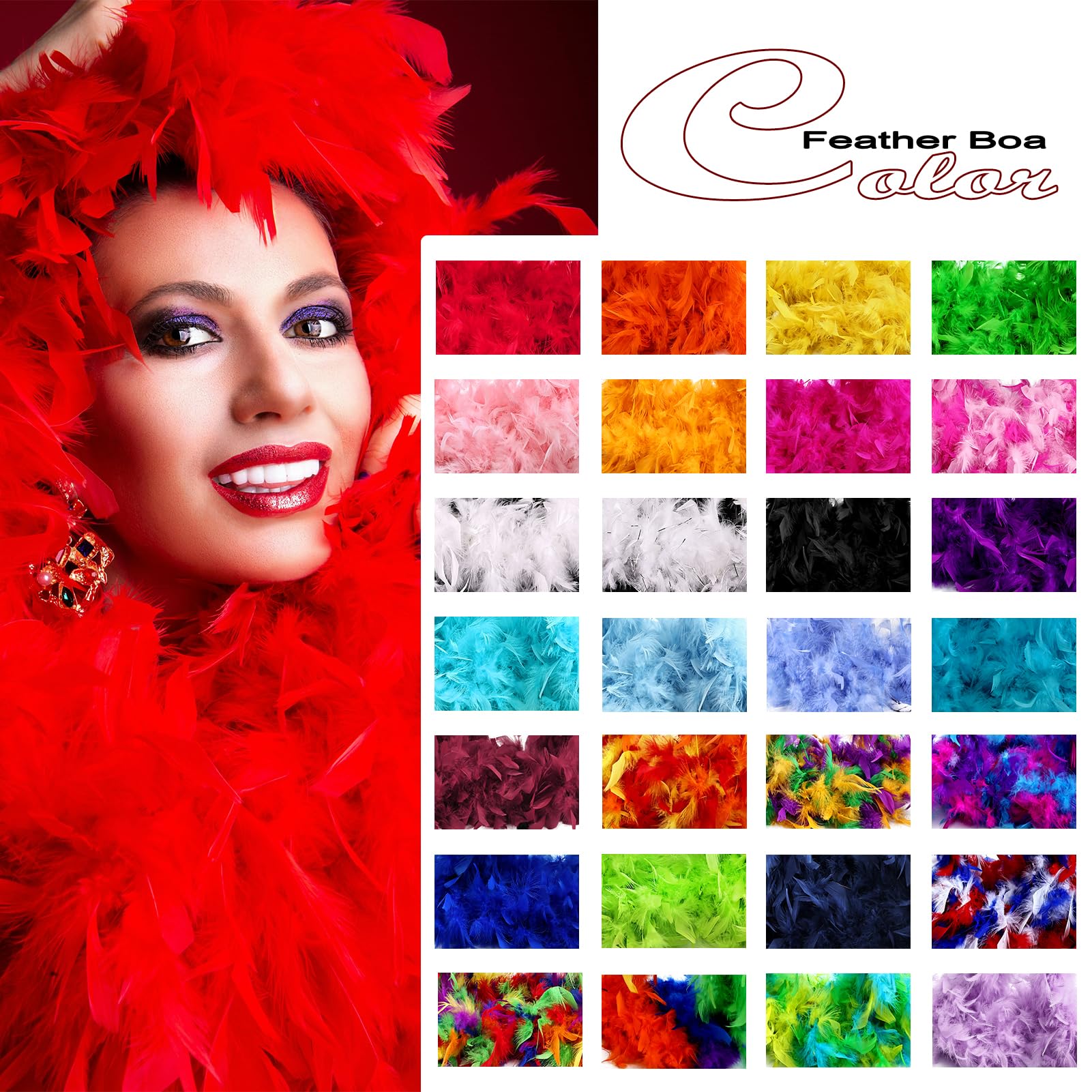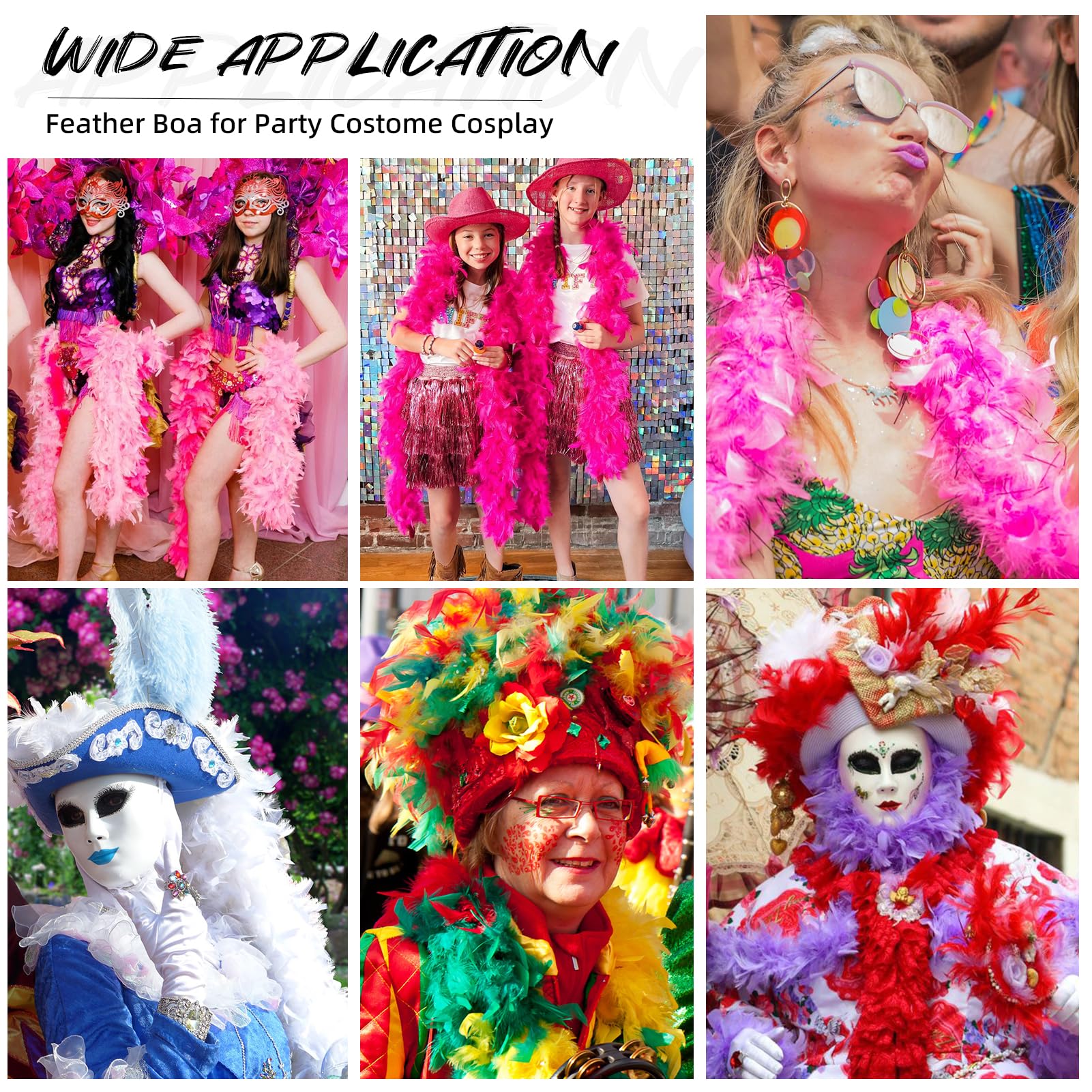 Application:The fluffy feather boa are an ideal accessory for party and celebration dress ups, stage performances or photo shoot dress ups, etc; Not only perfect for concerts,dance performances,weddings, Mardi Gras celebrations, Christmas parties, New Yearβs Eve parties, Halloween parties, carnival, Cosplay and various party decorations etc