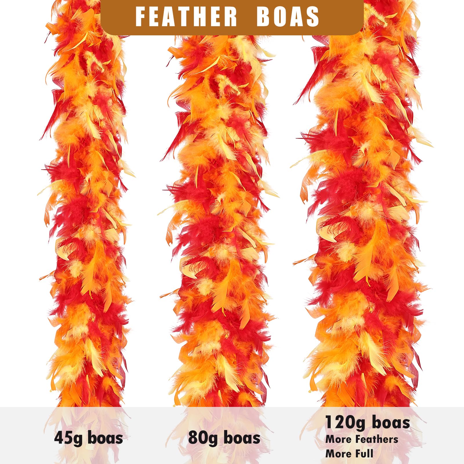 Softer Feather Boa Material: The feather boa are selected high-quality and soft natural turkey feathers, and have undergone strict quality inspection, screened and processed through high temperature and UV disinfection. which is friendly to skin and comfortable to wear,not easy to fade or break, also is lightweight and reusable, And reliable material can be applied for a long time