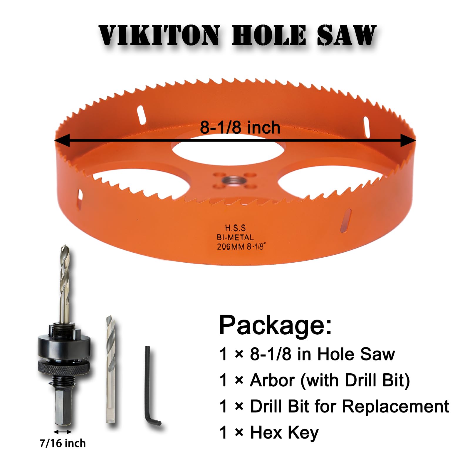 Package Include: 8-1/8 in hole saw, 1 pc arbor(with 1 drill bit), 1 pc drill bit for replacement, 1 pc hex key.