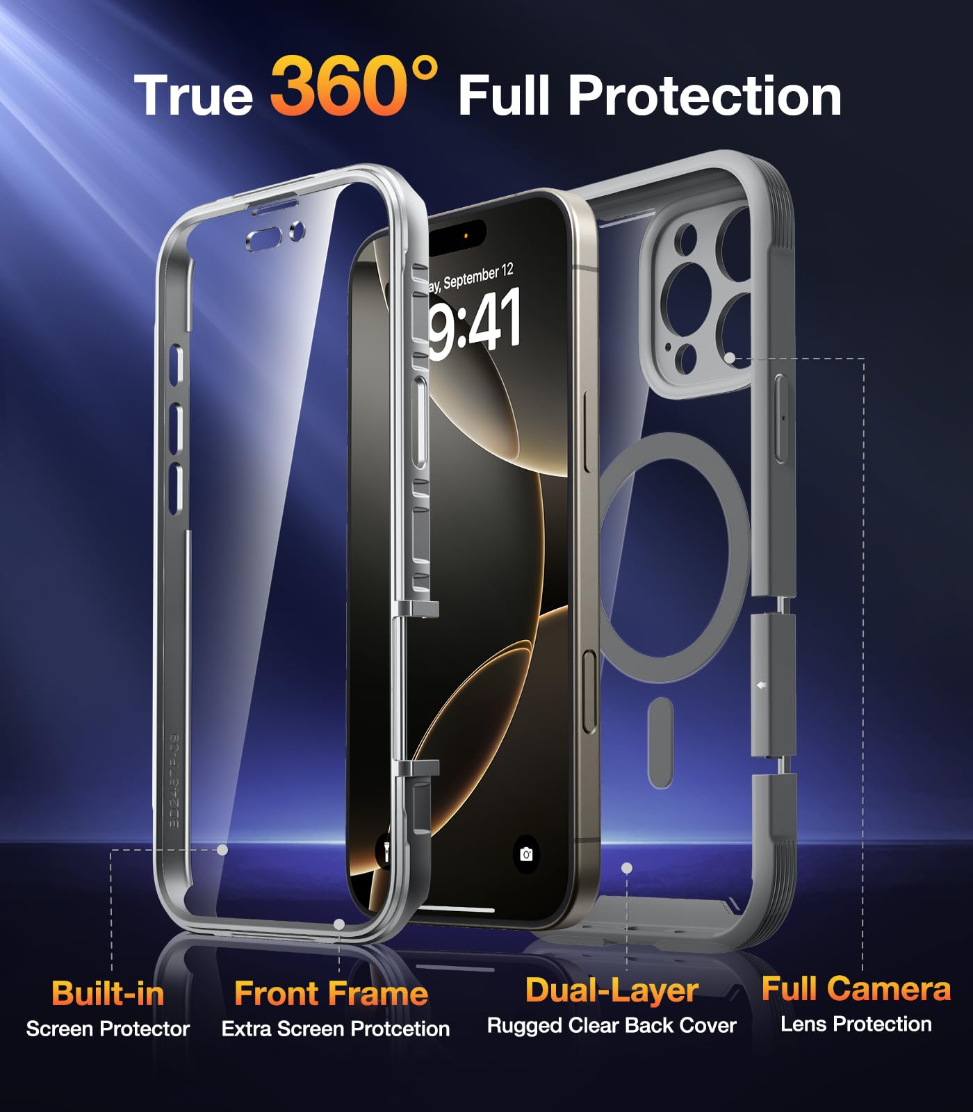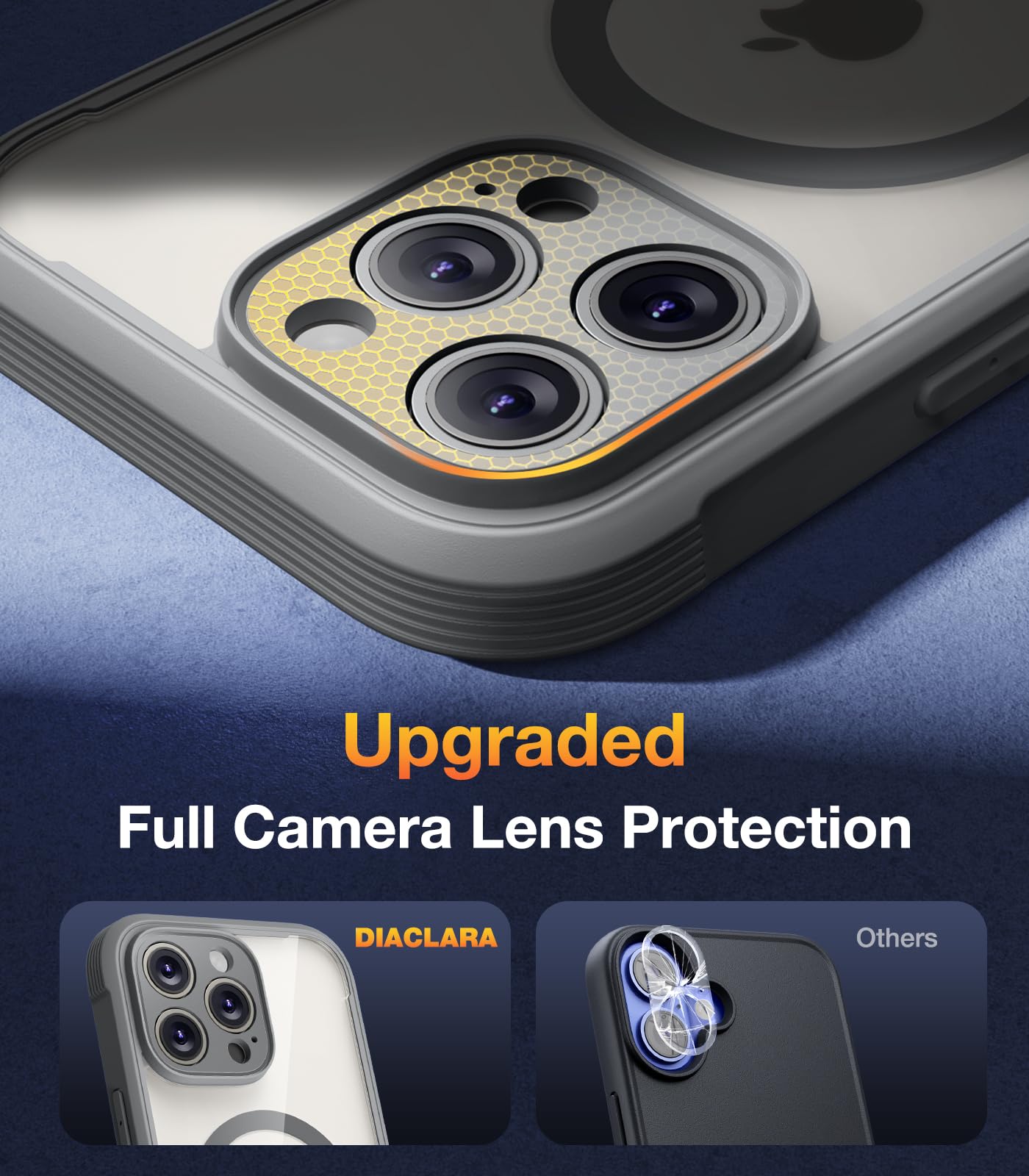 【Suitable for All Magnet Accessories】Diaclara designed for iPhone 16 pro max case built-in N52 magnetic ring that is compatible with magsafe accessories. The strong magnetism supports charging from any angle, making wireless charging faster, easier and safer. No need to worry about the charger being separated from the phone anymore.