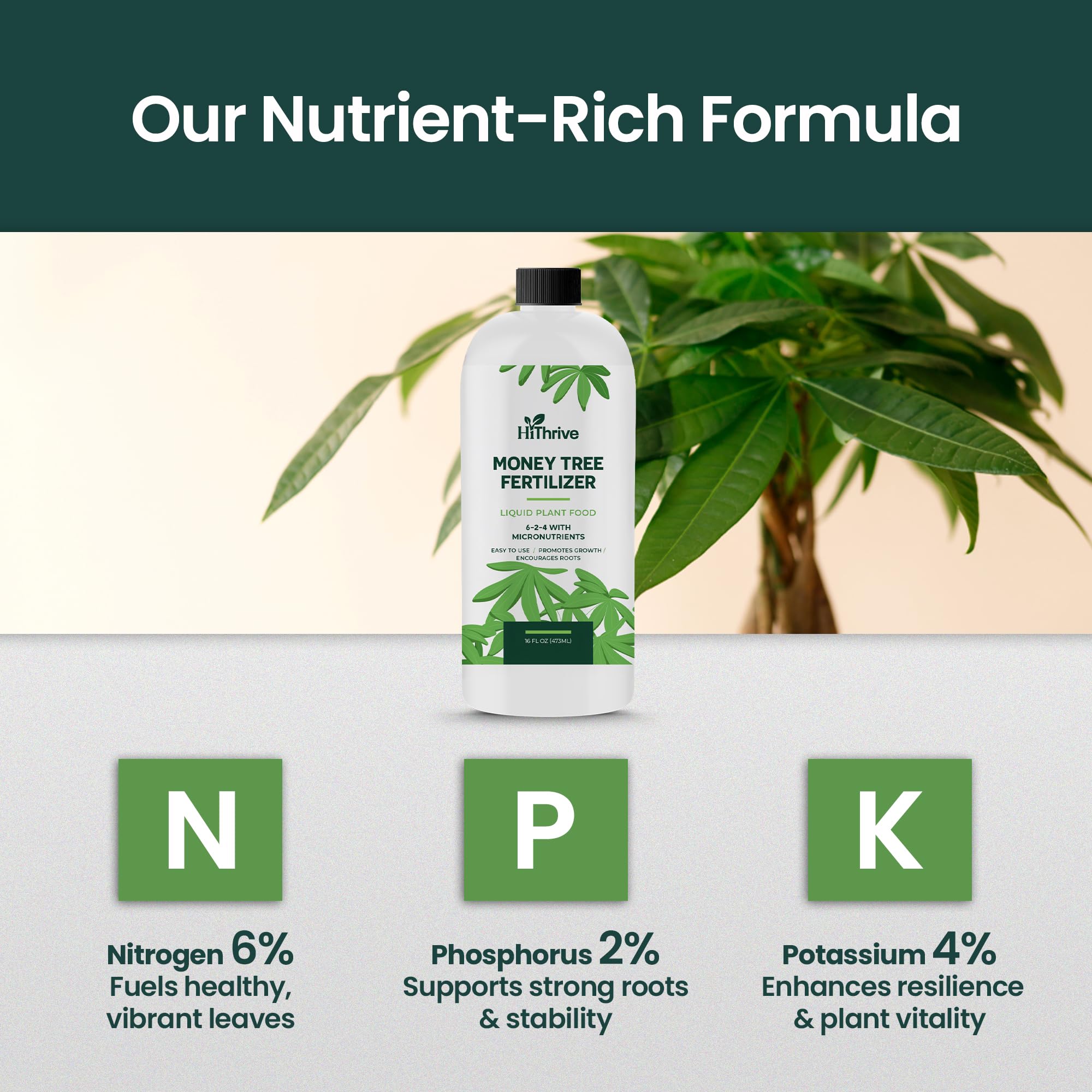 2X MORE VALUE: The 16 oz bottle of HiThrive Money Tree Plant Food makes 96 gallons of nutrient-rich fertilizer, while the 32 oz delivers 192 gallons of long-lasting care for lush, thriving plants.